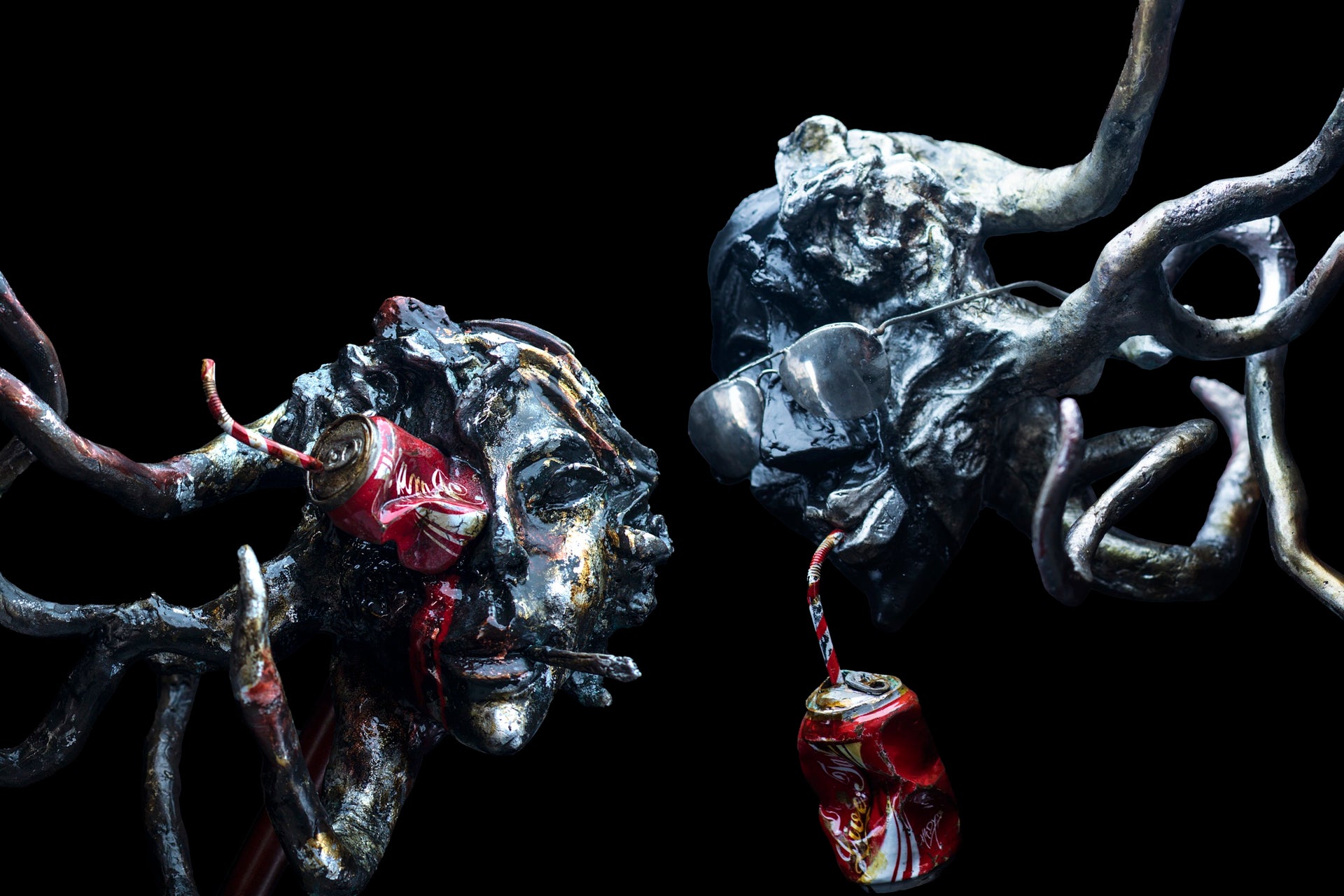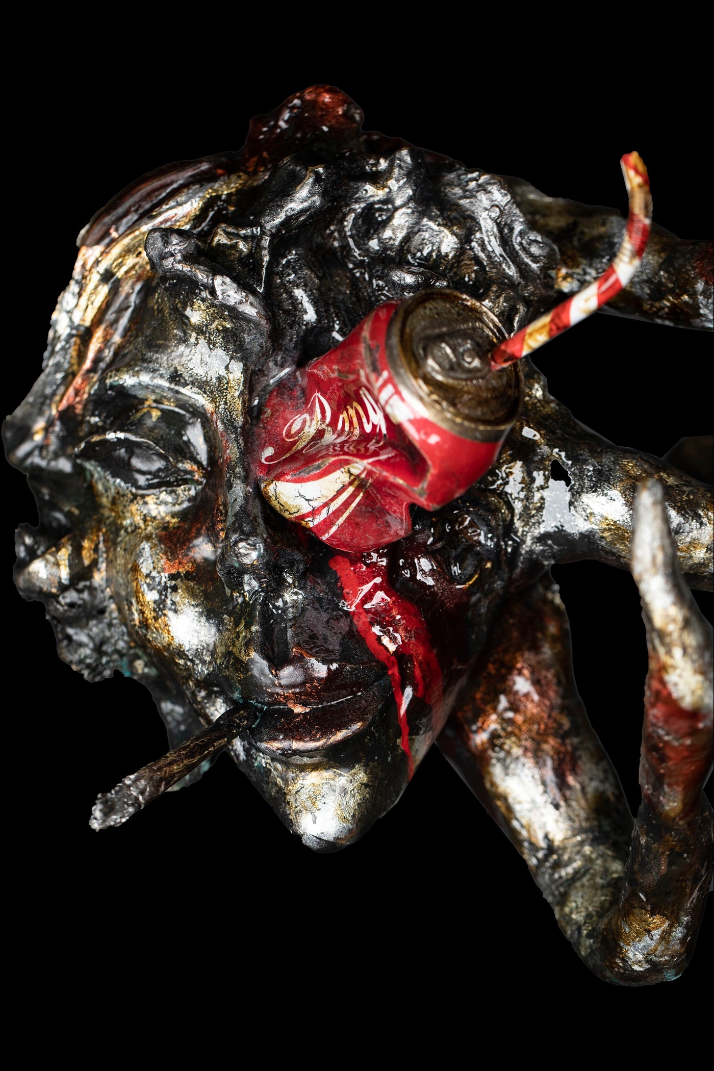 ECHOING BOTTICELLI’S BIRTH OF VENUS, THIS SERIES REIMAGINES THE GODDESS NOT RISING FROM THE SEA BUT SINKING INTO THE CHAOS OF THE MODERN AGE. A SYMBOL OF THE SACRED FEMININE DRAGGED DOWN BY THE PRESSURES AND PLEASURES OF CONTEMPORARY LIFE. TOGETHER, THE WORKS TRACE A JOURNEY THROUGH THE DIVINE FEMININE, RADIANT, REBELLIOUS, WOUNDED, AND TRANSFORMED. AN EXPLORATION OF BEAUTY, PASSION, AND THE PRICE OF SHINING TOO BRIGHTLY.