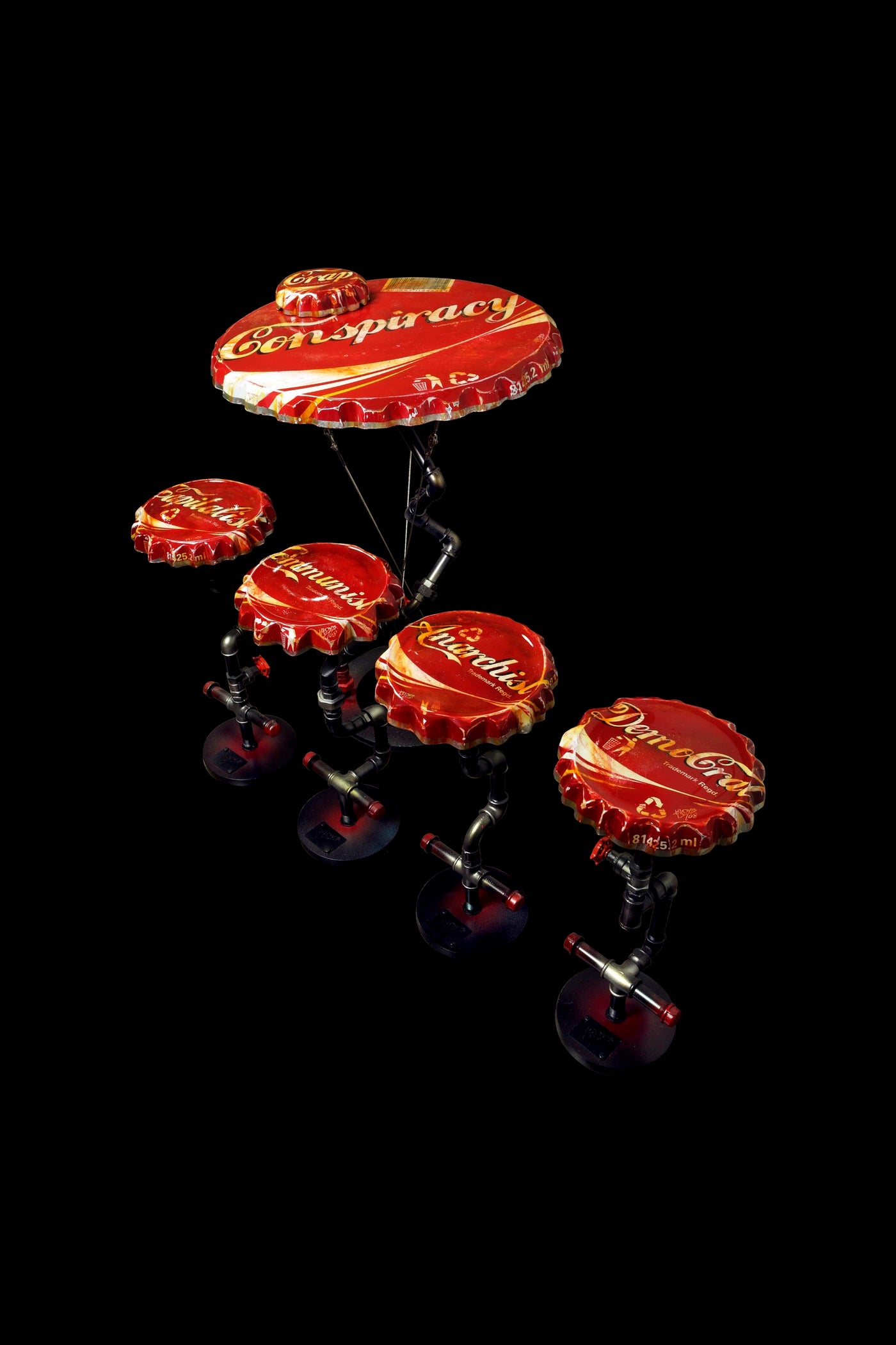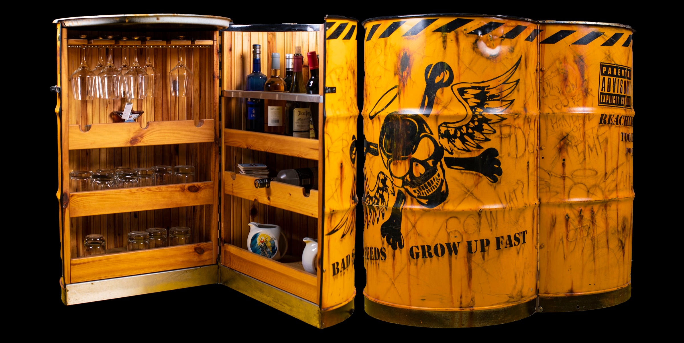 Crafted from upcycled industrial barrels and infused with irony, they transform symbols of mass production into icons of leisure and luxury. Each piece invites reflection on excess, consumption, and the fine line between indulgence and awareness.