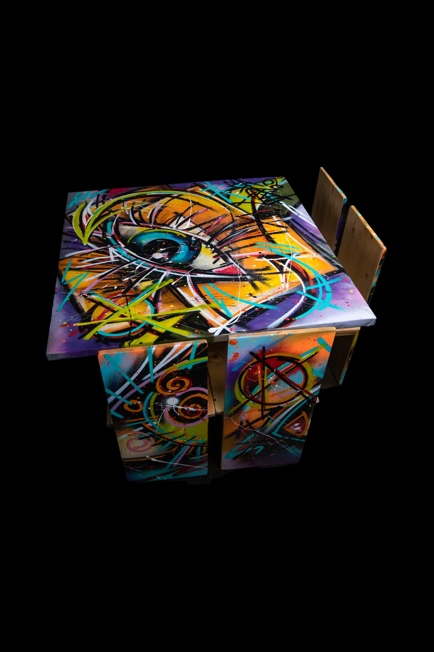 SOLID WOOD TABLES AND STOOLS HAND CARVED FROM BRAZILIAN CEDAR WOOD, WHERE POP CULTURE, FORM, AND CRAFTSMANSHIP COLLIDE.