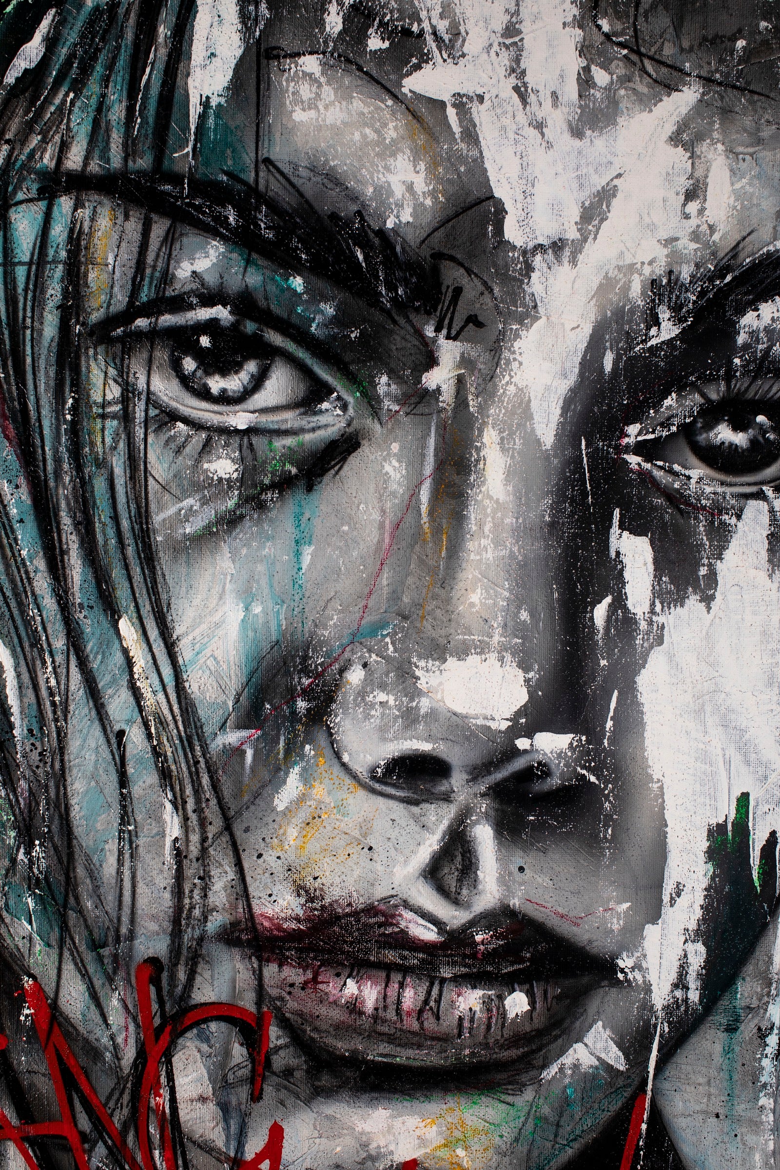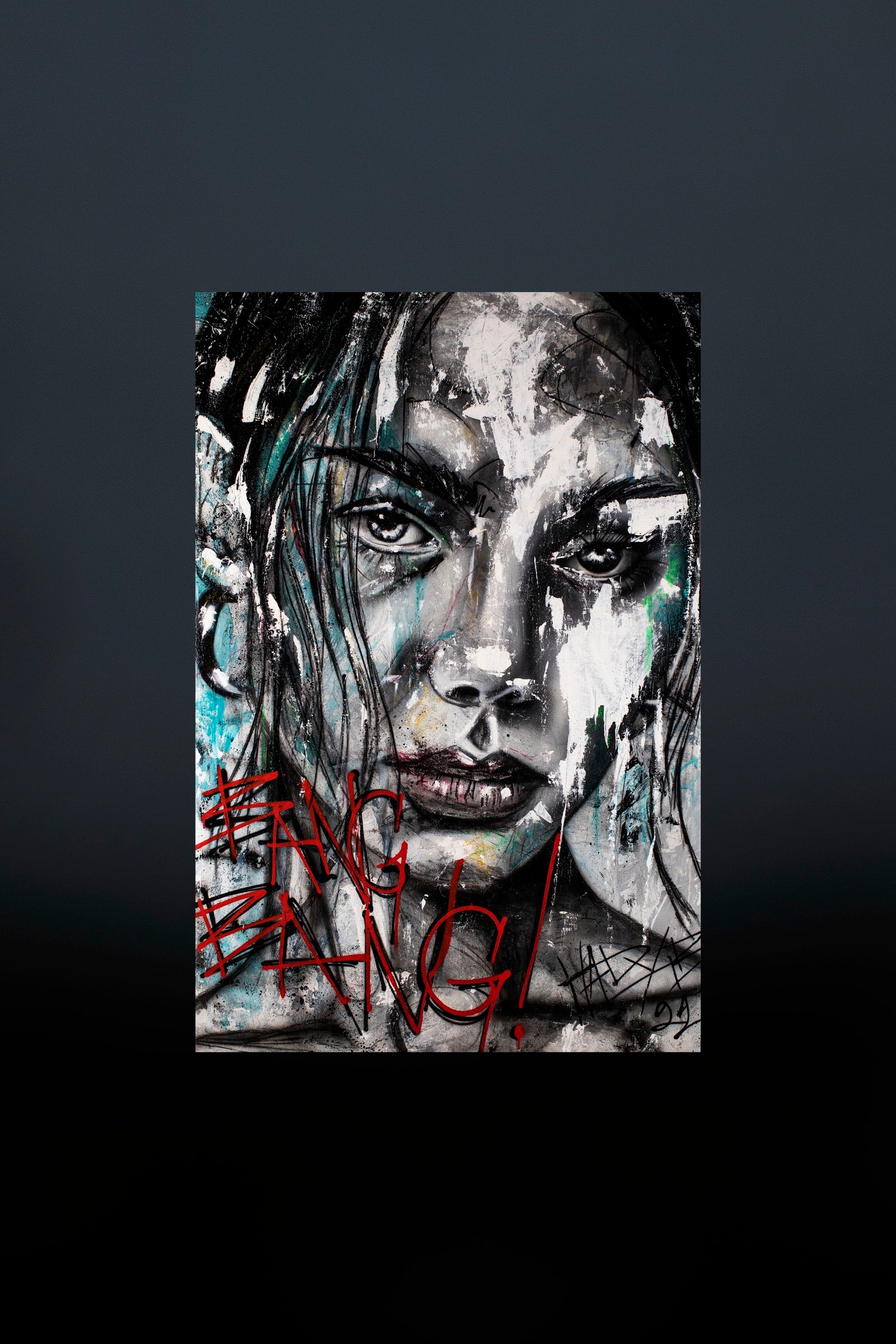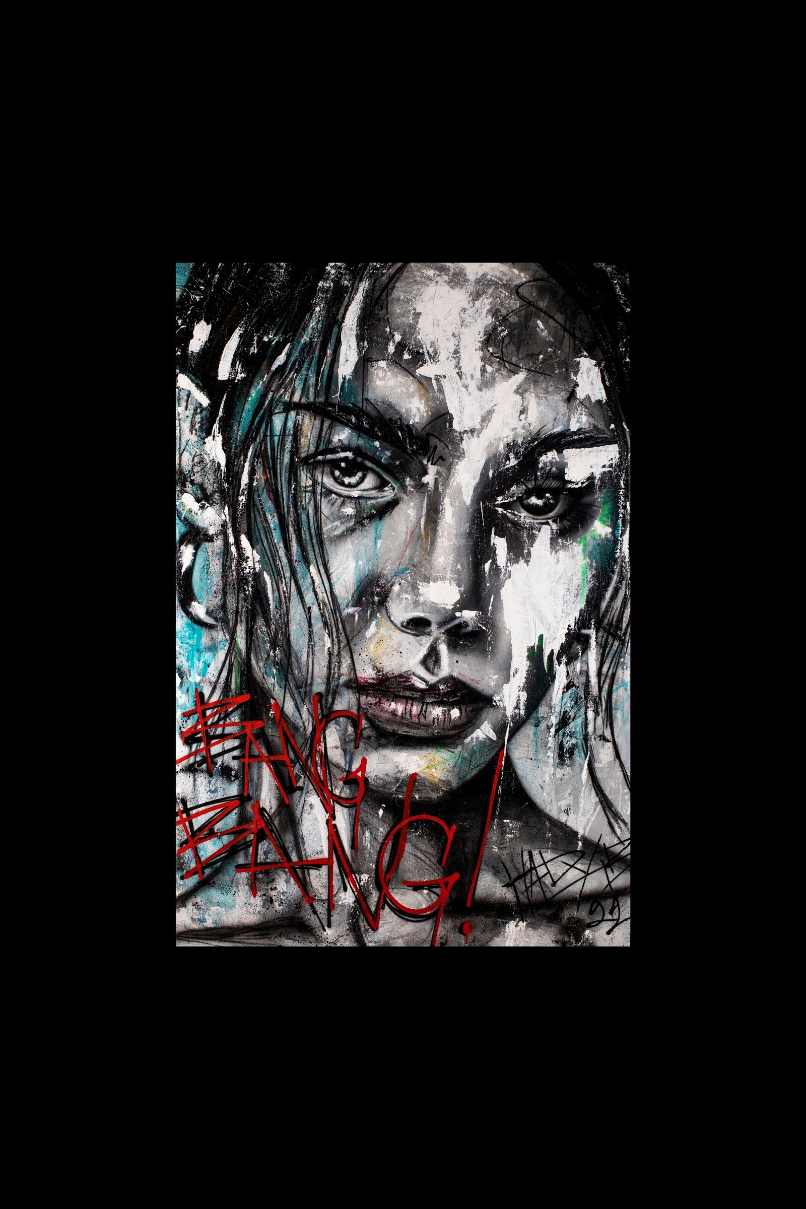 Bang Bang is an act, not a portrait. The face is scarred by language, defaced by gesture, violated by its own naming. The words don’t explain the image, they interrupt it. Violence here is not physical; it is symbolic, emotional, cultural. Identity is overwritten, beauty vandalized, presence challenged. This is a confrontation with how desire, power, and aggression collide on the surface of the human face.