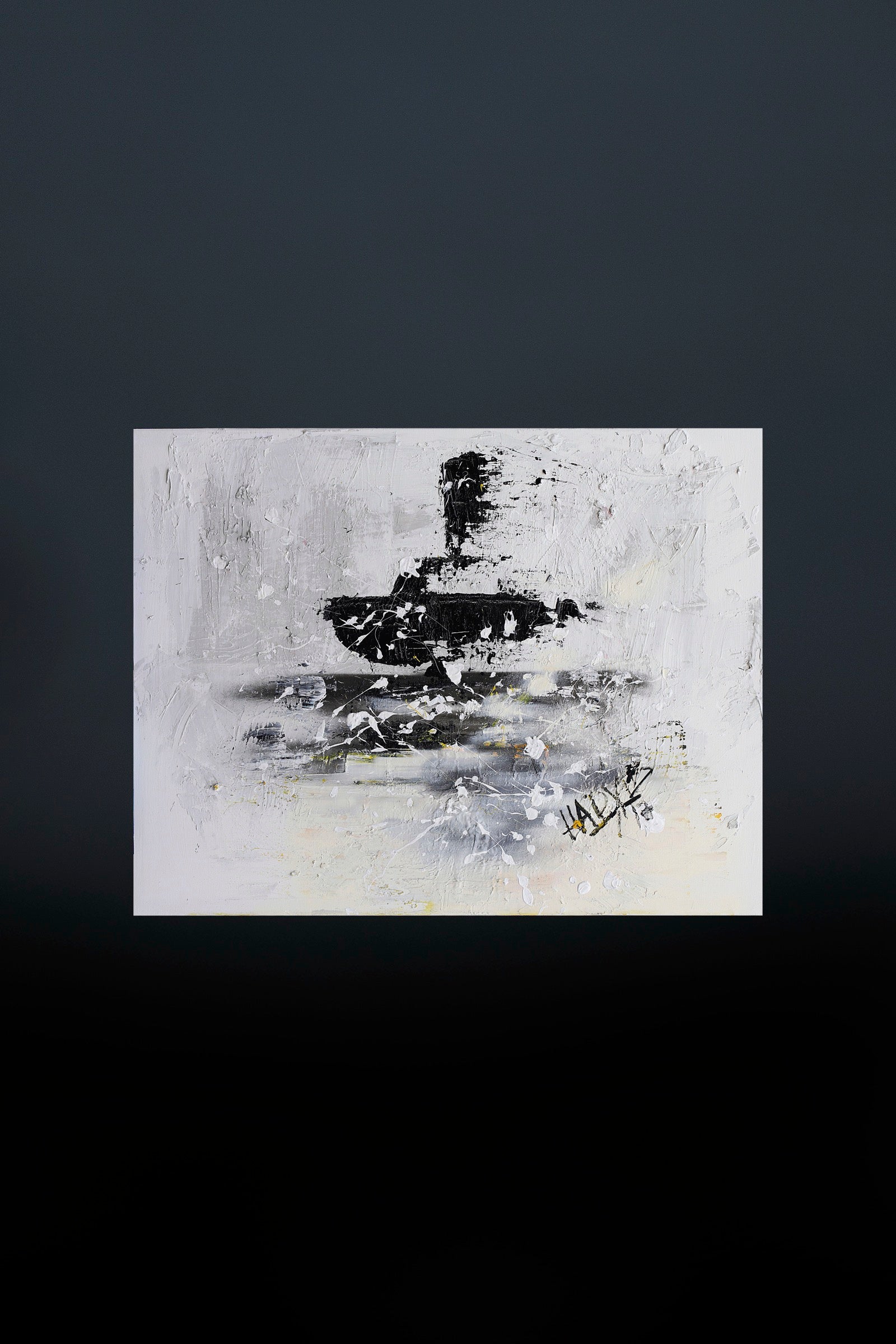 Boat Ride captures a quiet passage through uncertainty. A dark, solitary form floats within a vast pale space, suspended between motion and stillness. The painting feels introspective and restrained, like drifting without urgency, where direction matters less than presence. Silence dominates, broken only by subtle movement beneath the surface.