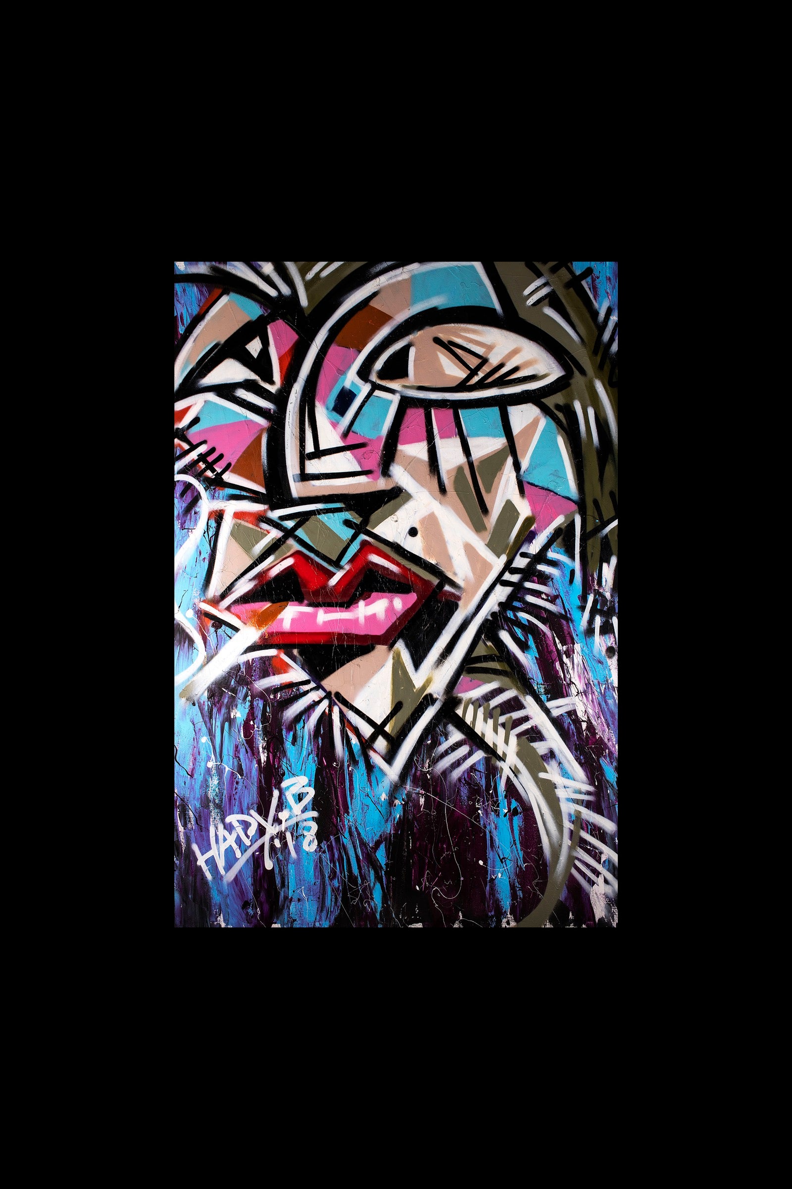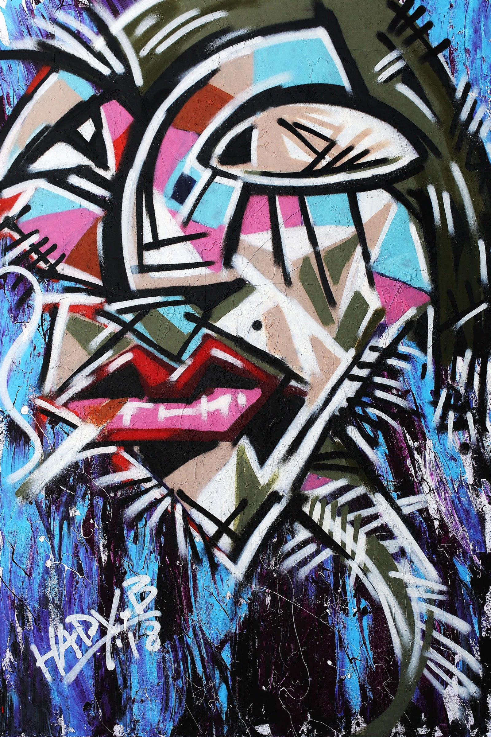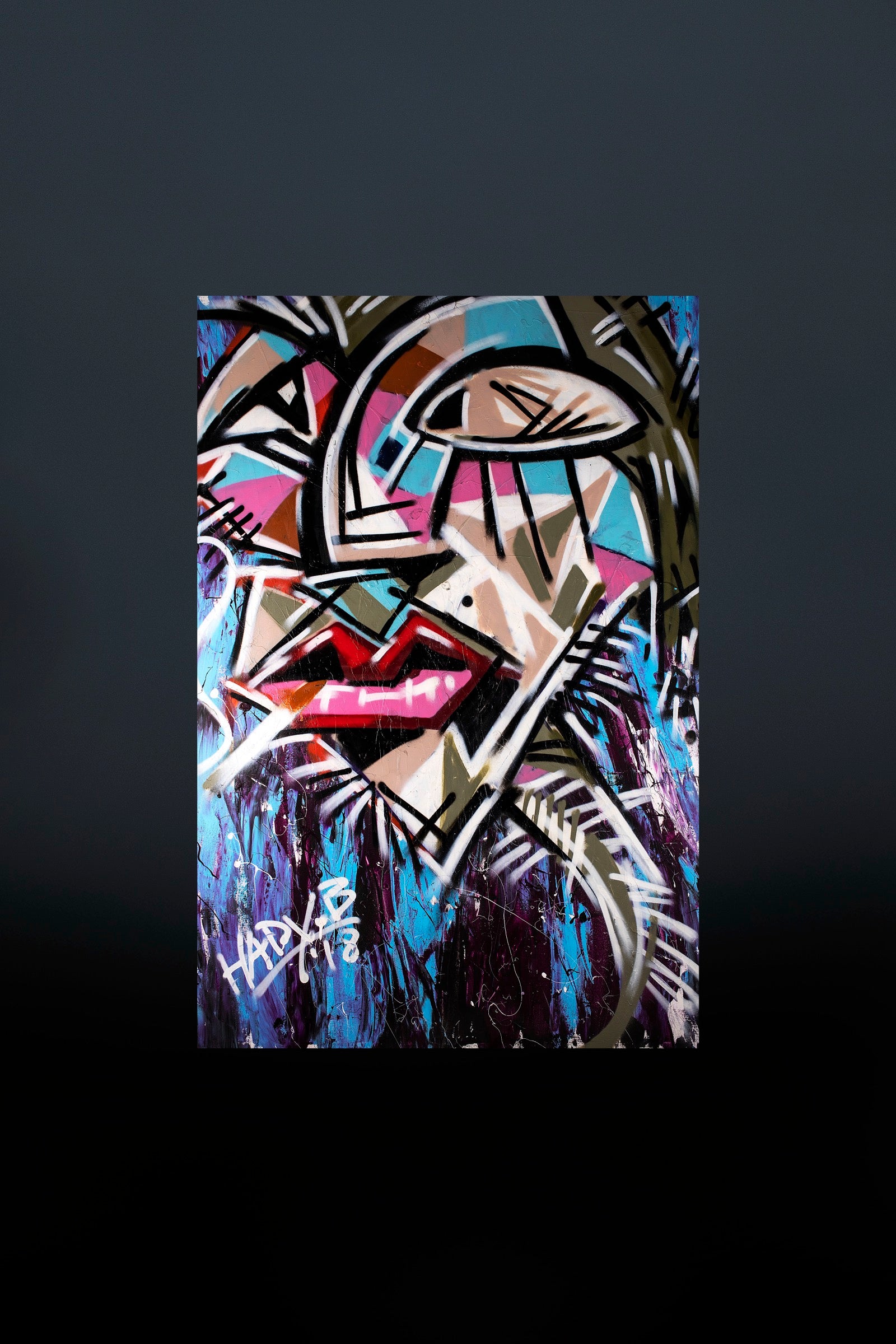 The face fractures into color and gesture as if identity is constantly slipping out of alignment.