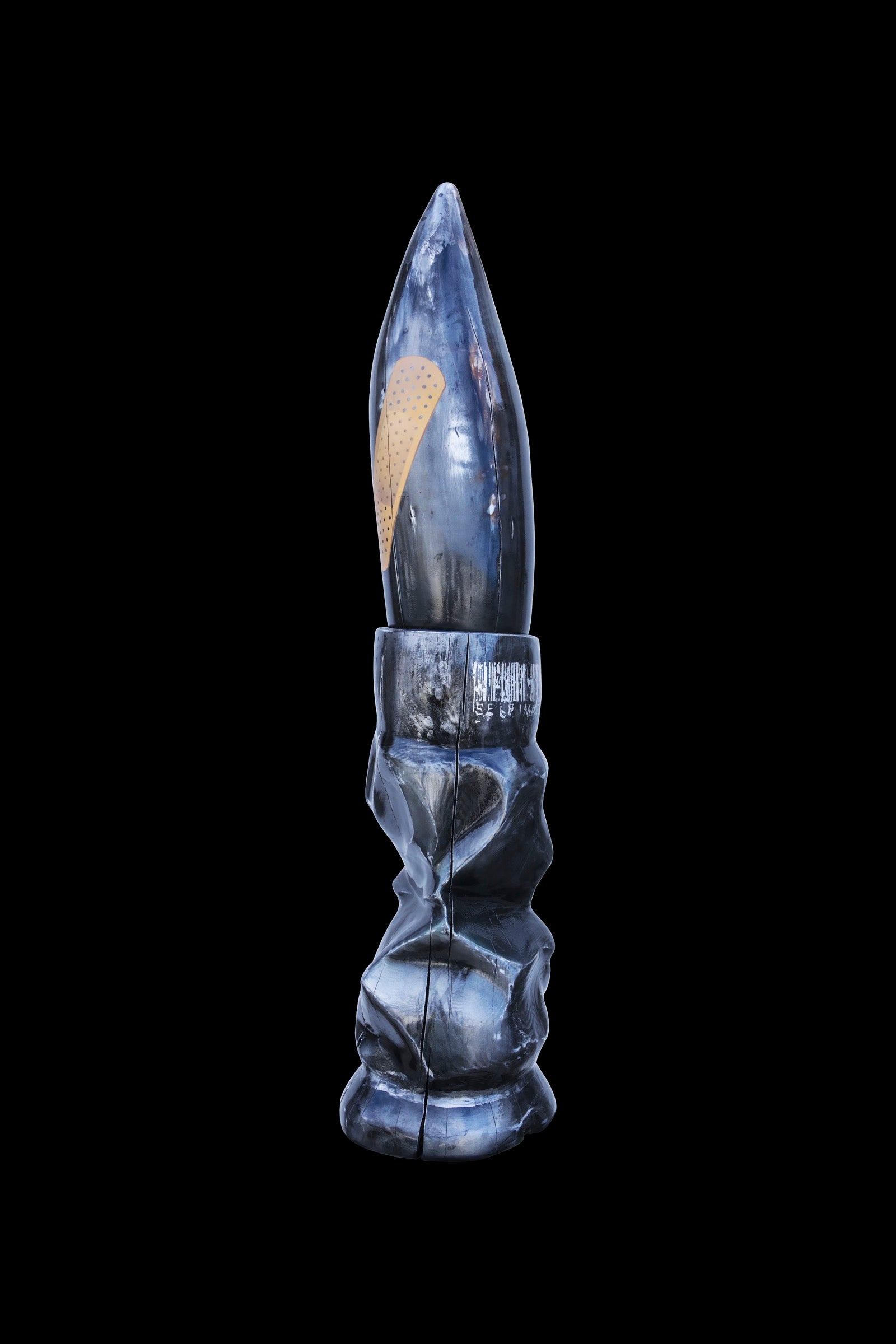 A symbol of harm caused to others. Carved from wood this piece depicts a bullet with its wound covered with a band aid, a powerful metaphor for those who inflict pain yet claim victimhood. It challenges viewers to confront the complexity of hurt and accountability, making it a thought-provoking addition to any space that values meaningful art and difficult conversations.