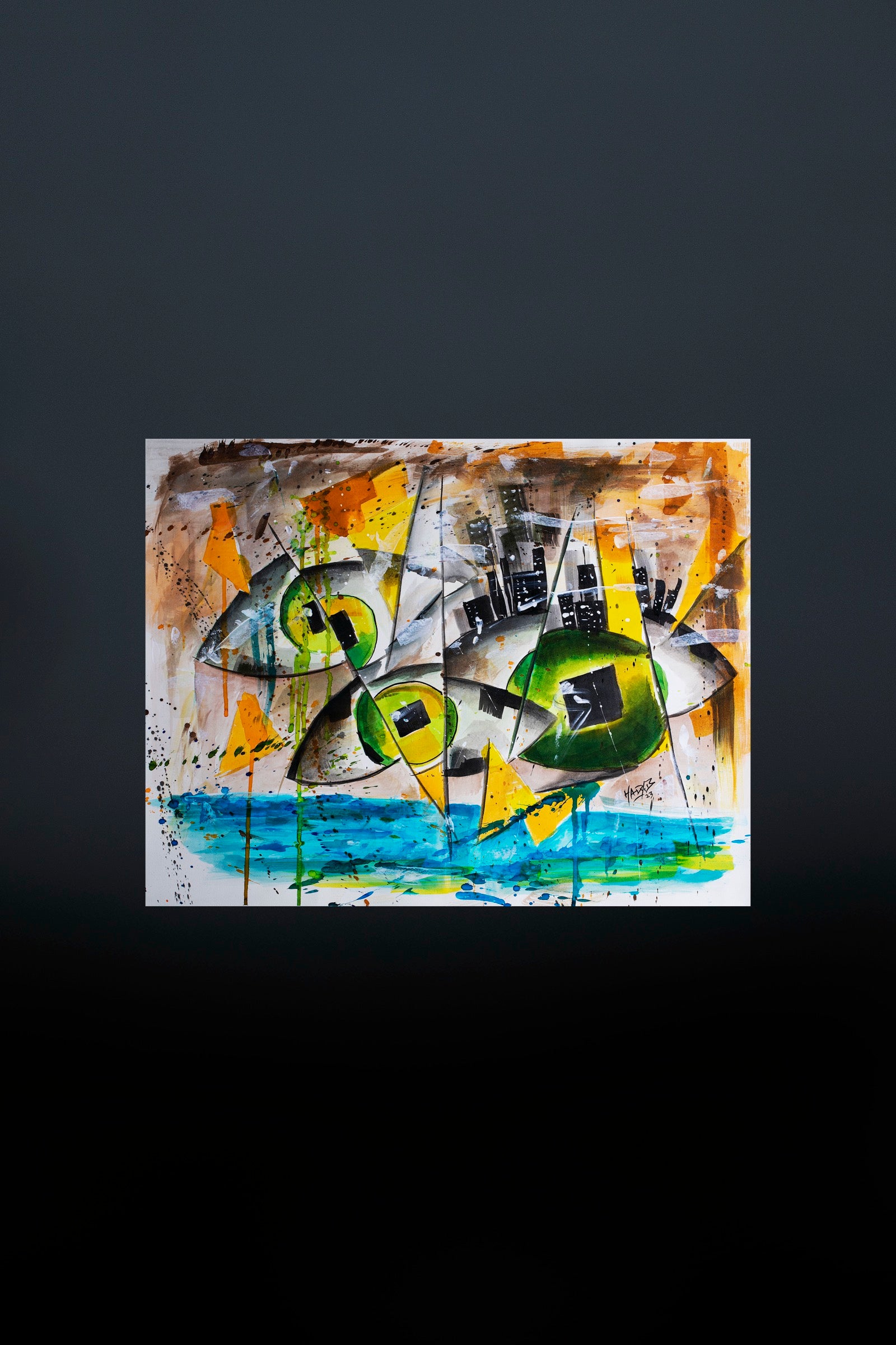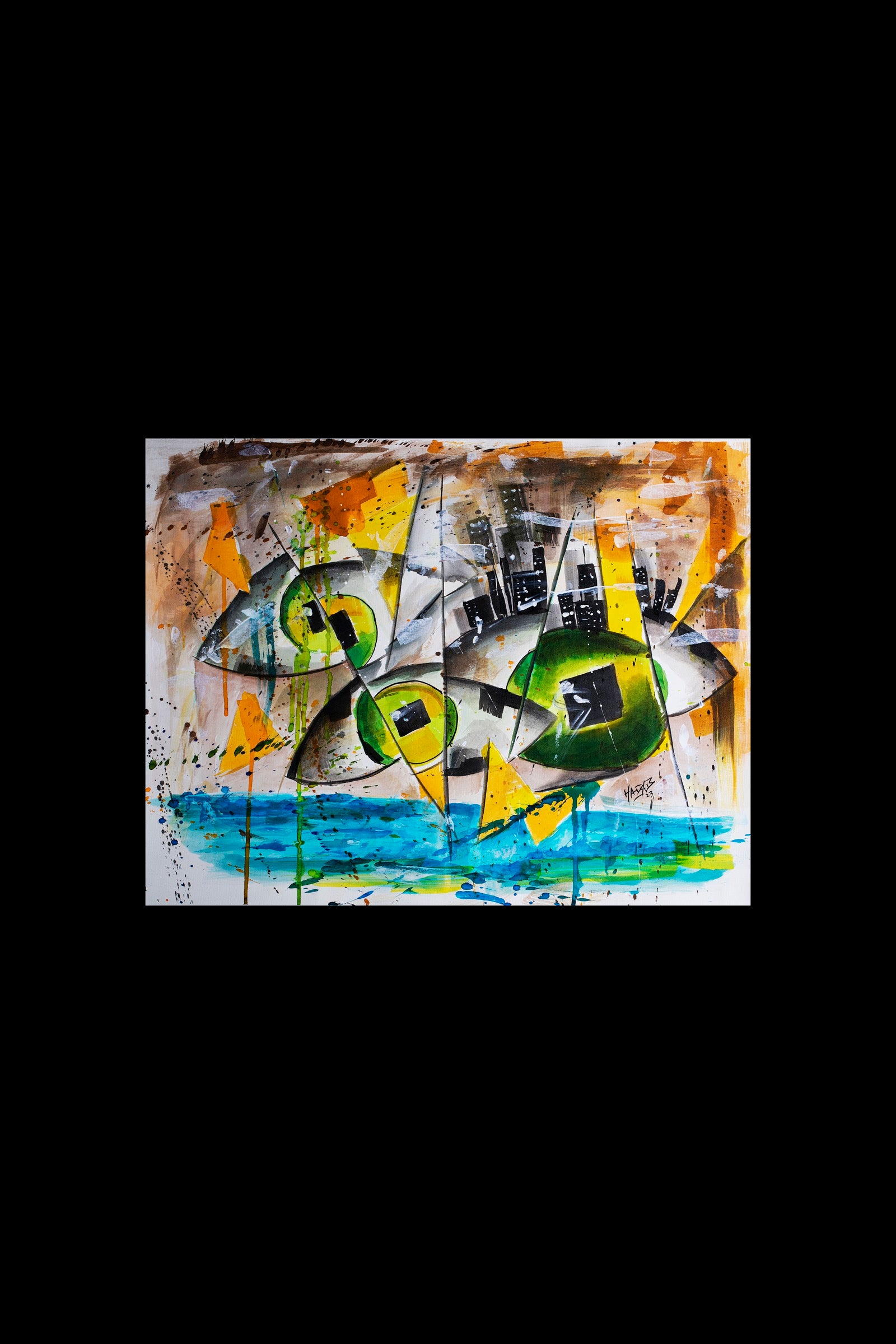 City Beneath Your Feet reflects the pulse of urban life seen from above and within at the same time. Fragmented shapes and sharp color contrasts suggest movement, noise, and constant acceleration. The city feels unstable and alive, layered with tension and rhythm, where control is temporary and direction is always shifting. It captures the sensation of standing still while everything beneath you keeps moving.