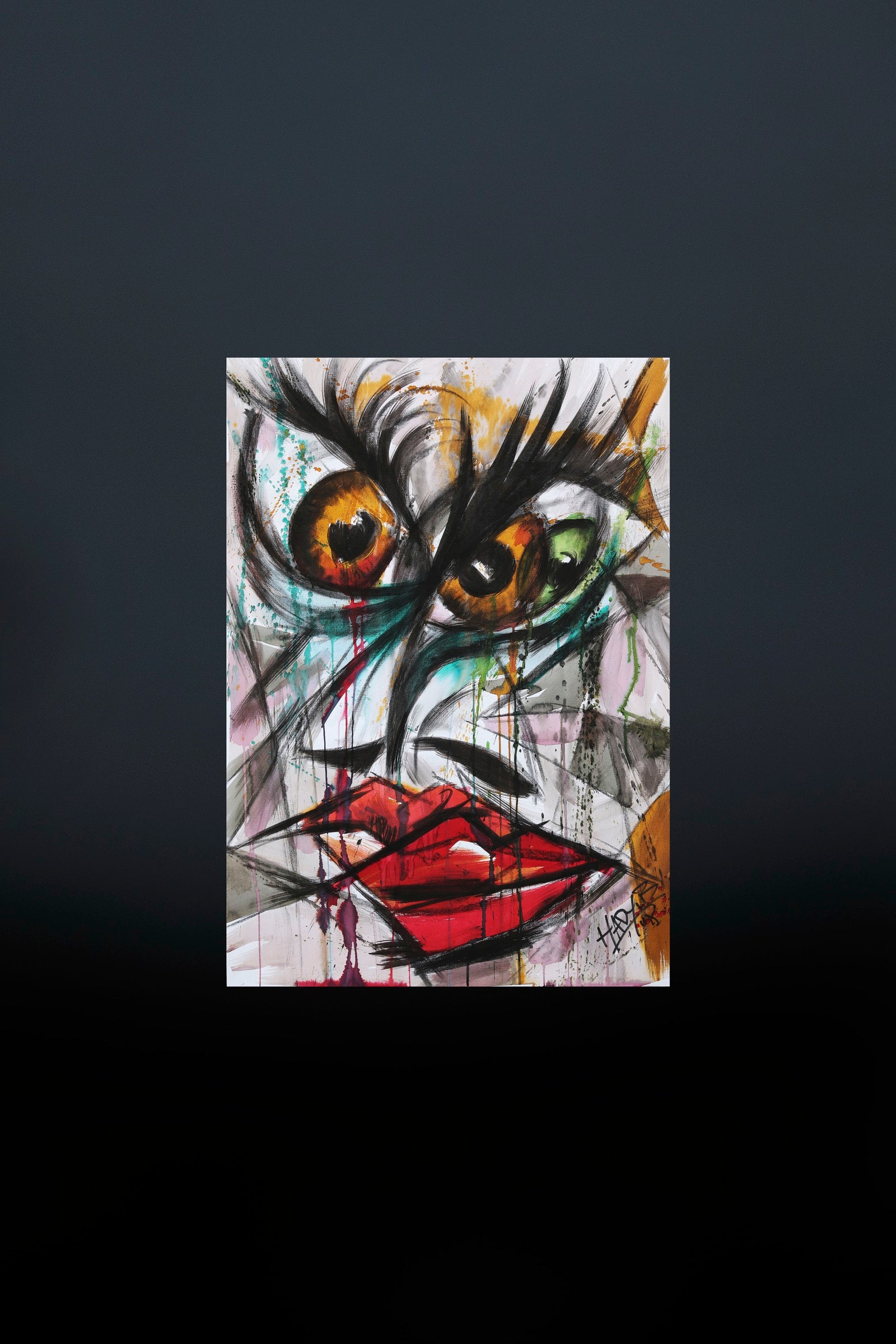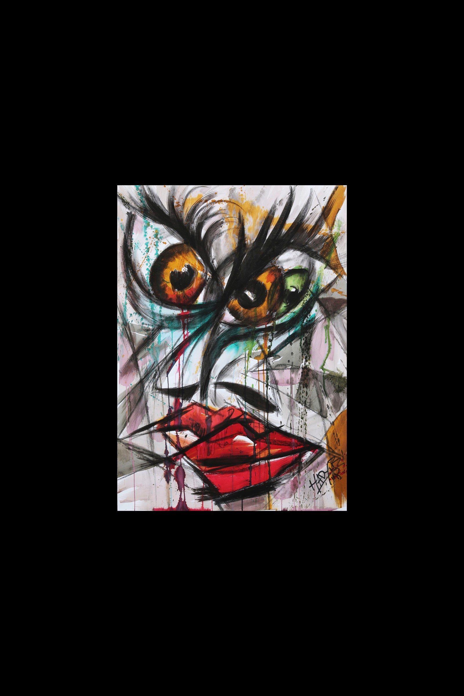 Doubt lives in the eyes before it reaches the mind. The gaze is split and unsettled, caught between instinct and hesitation. Lines hesitate, colors bleed into one another, and the face feels suspended in an unresolved question. This work captures uncertainty as a raw human state where clarity has not yet arrived.
