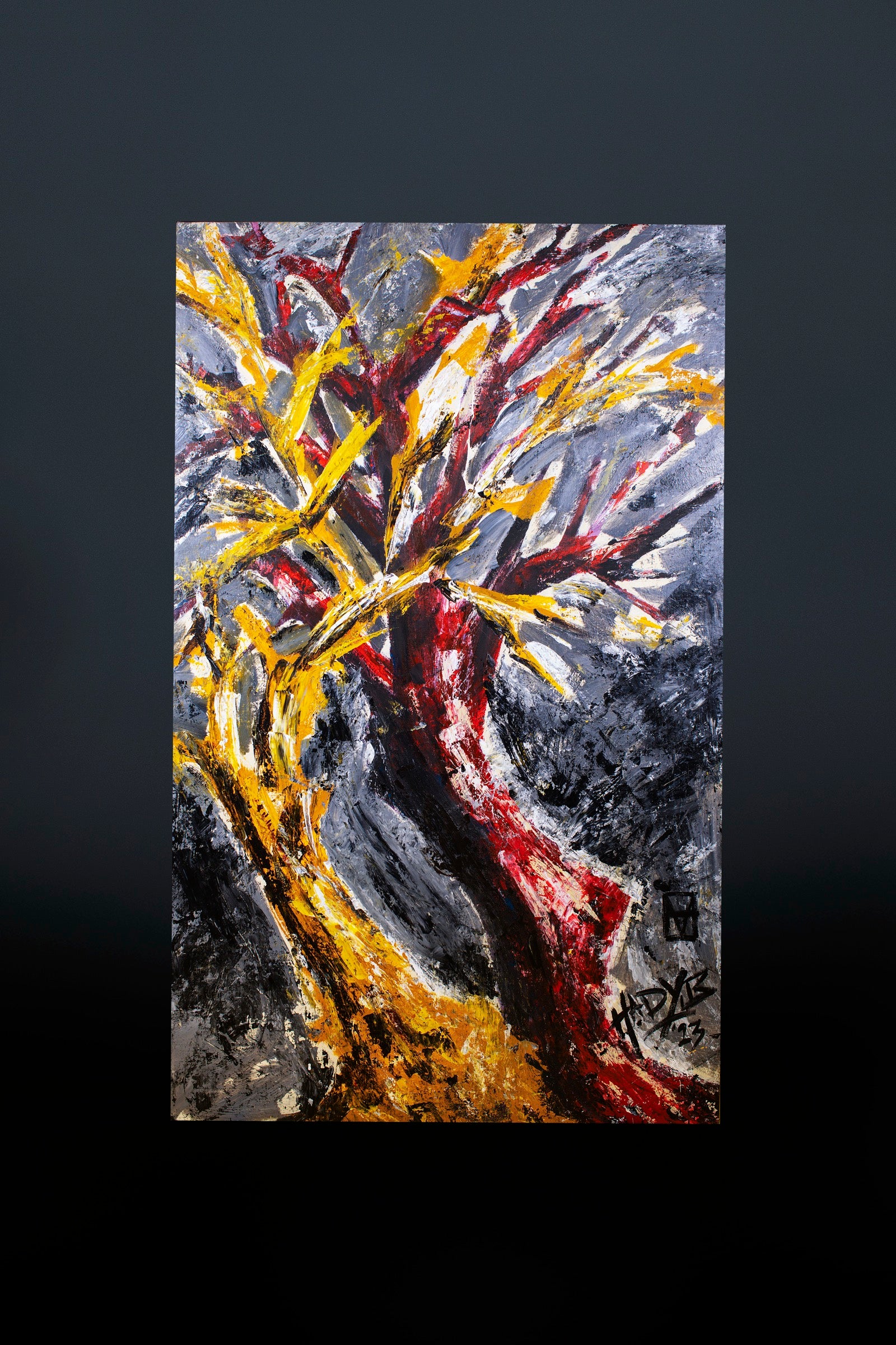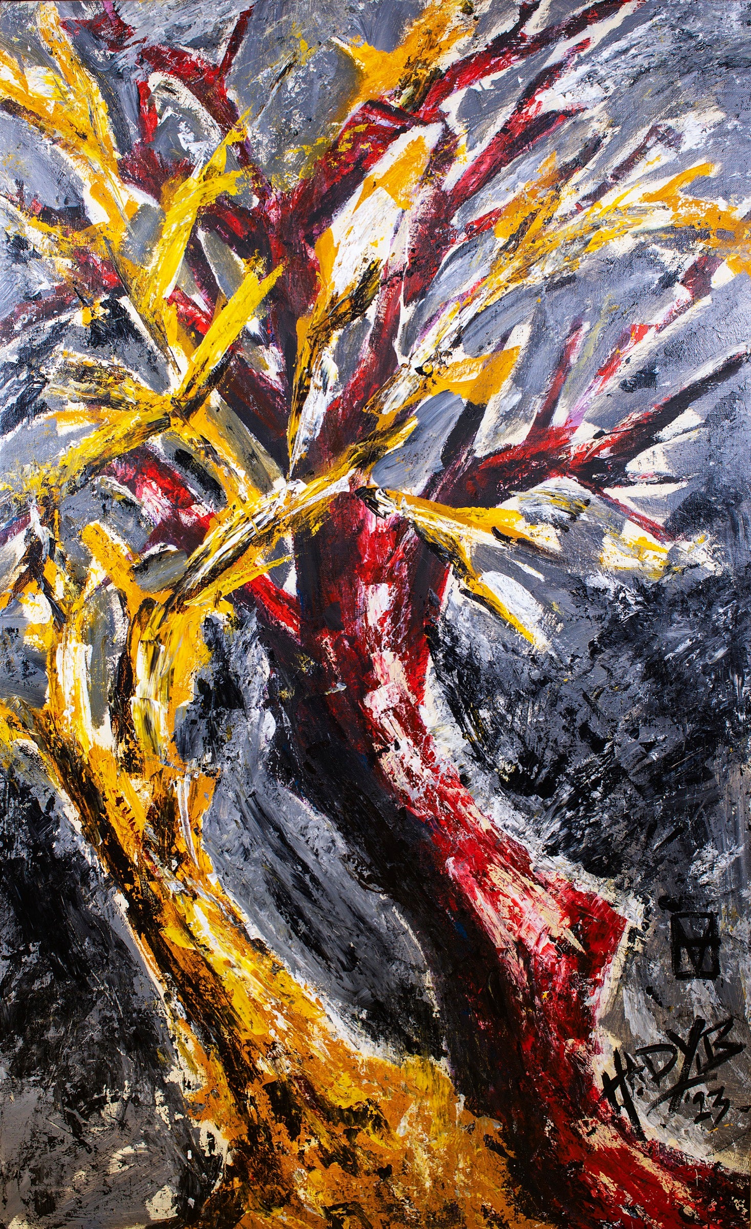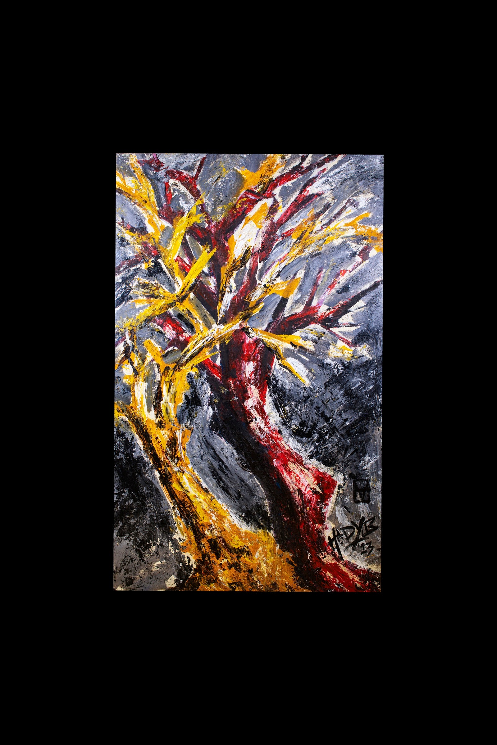 The yellow and red forms clash, bleed, and support one another, revealing that opposition is not a conflict to be resolved, but a condition of existence itself.