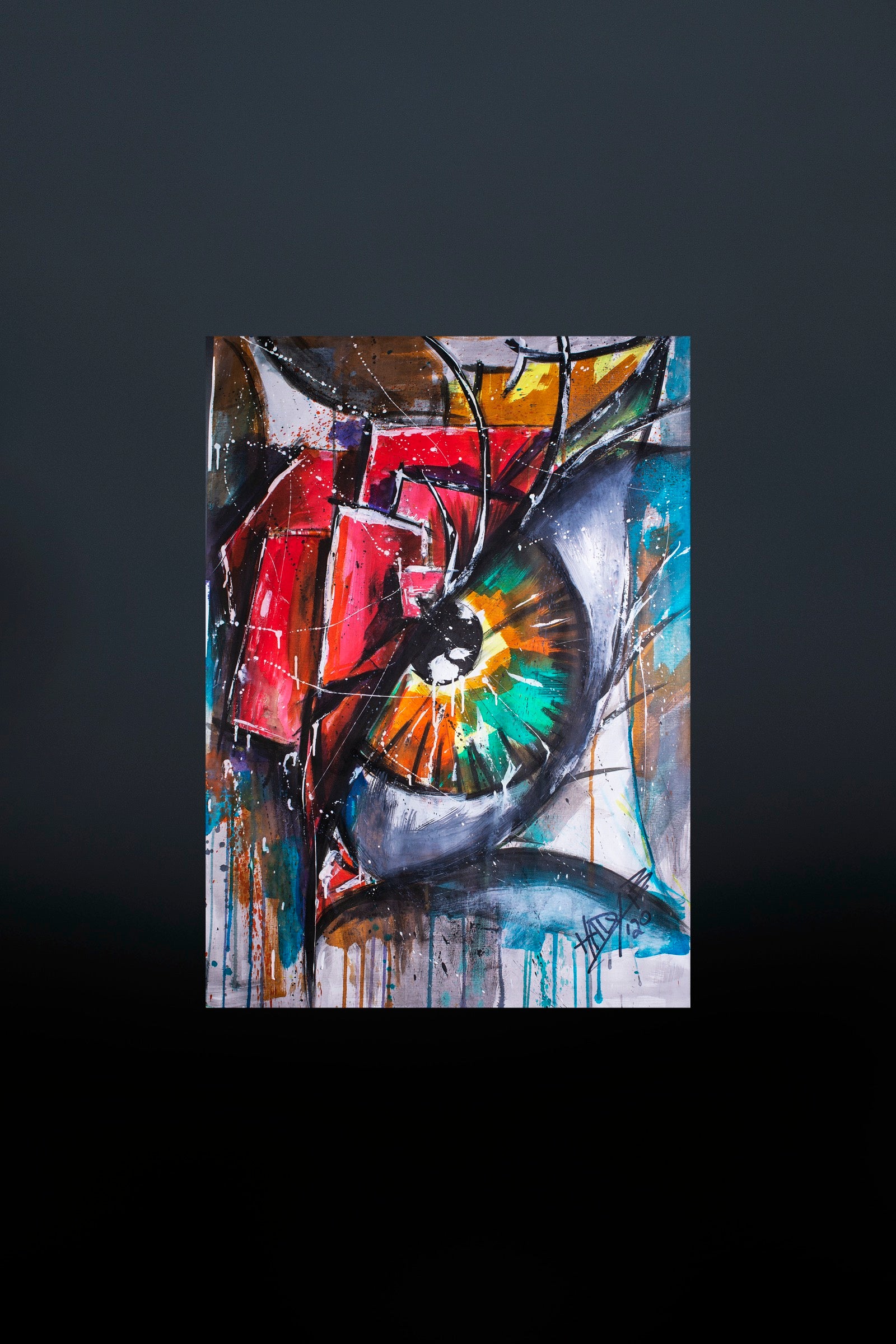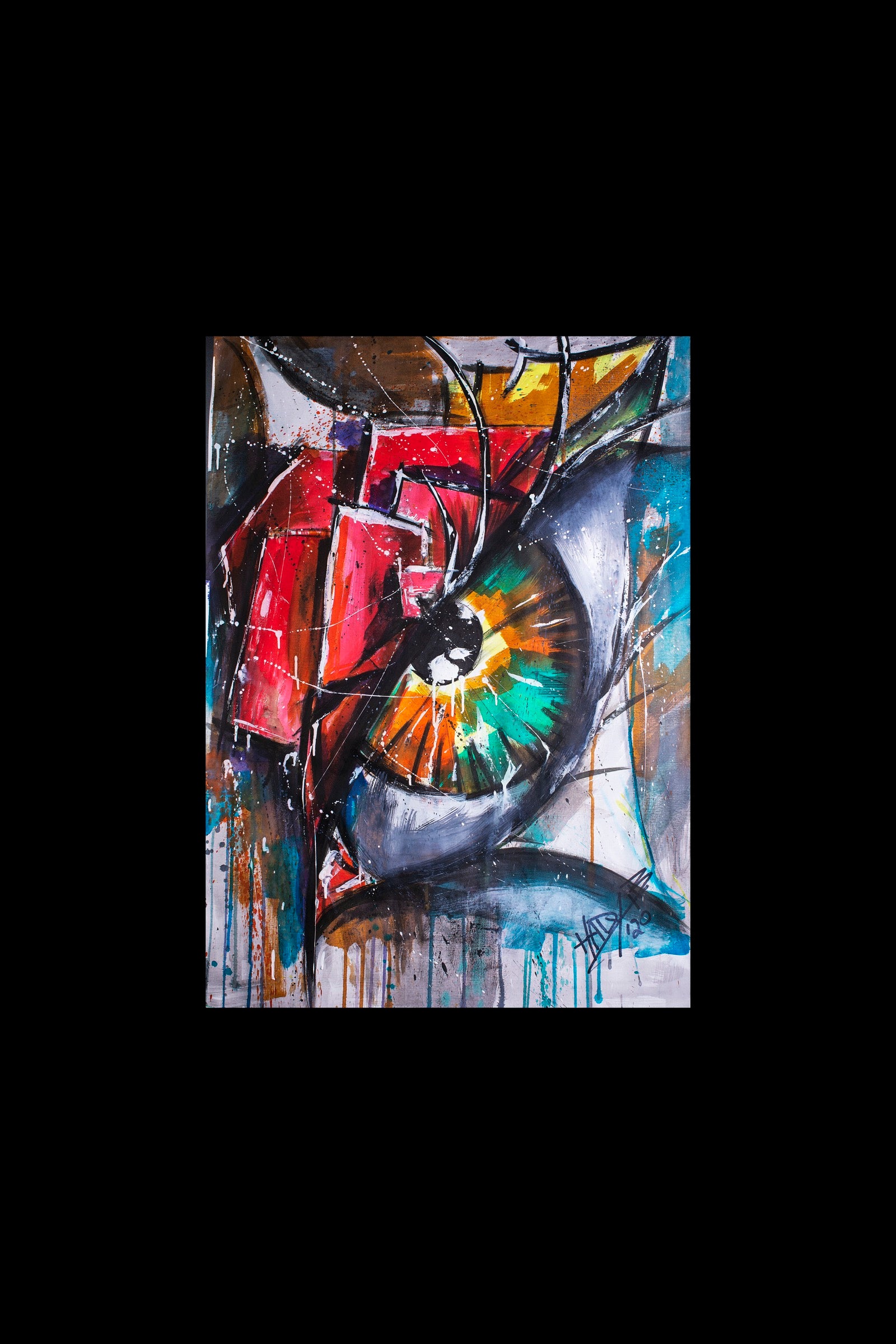 Inner Fire is a concentrated burst of awareness caught mid ignition. The eye becomes a core, radiating tension, instinct, and raw energy outward. Color circles and collides, suggesting a force that cannot be contained or quieted. This work speaks to the moment when something inside refuses suppression and chooses intensity over silence.