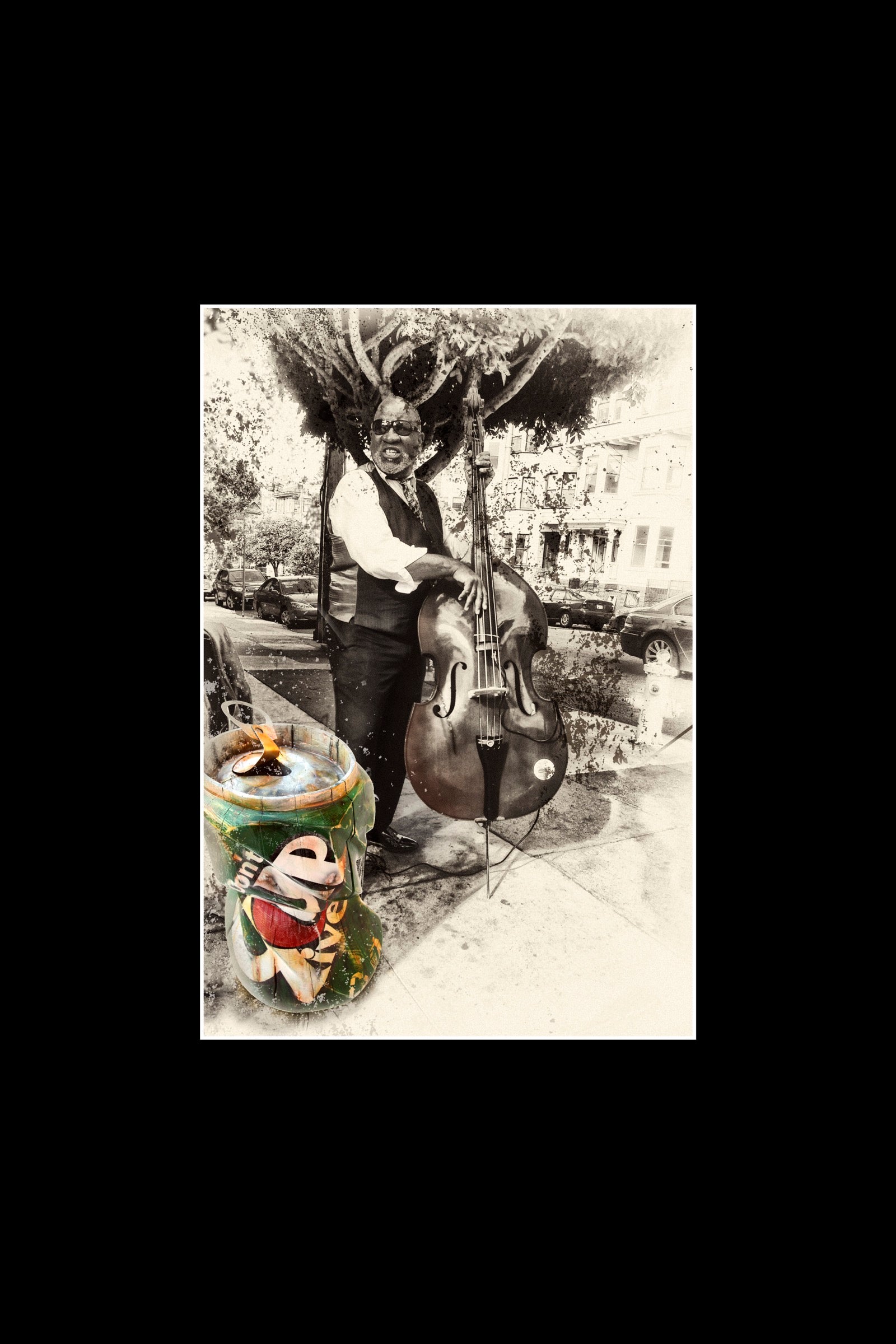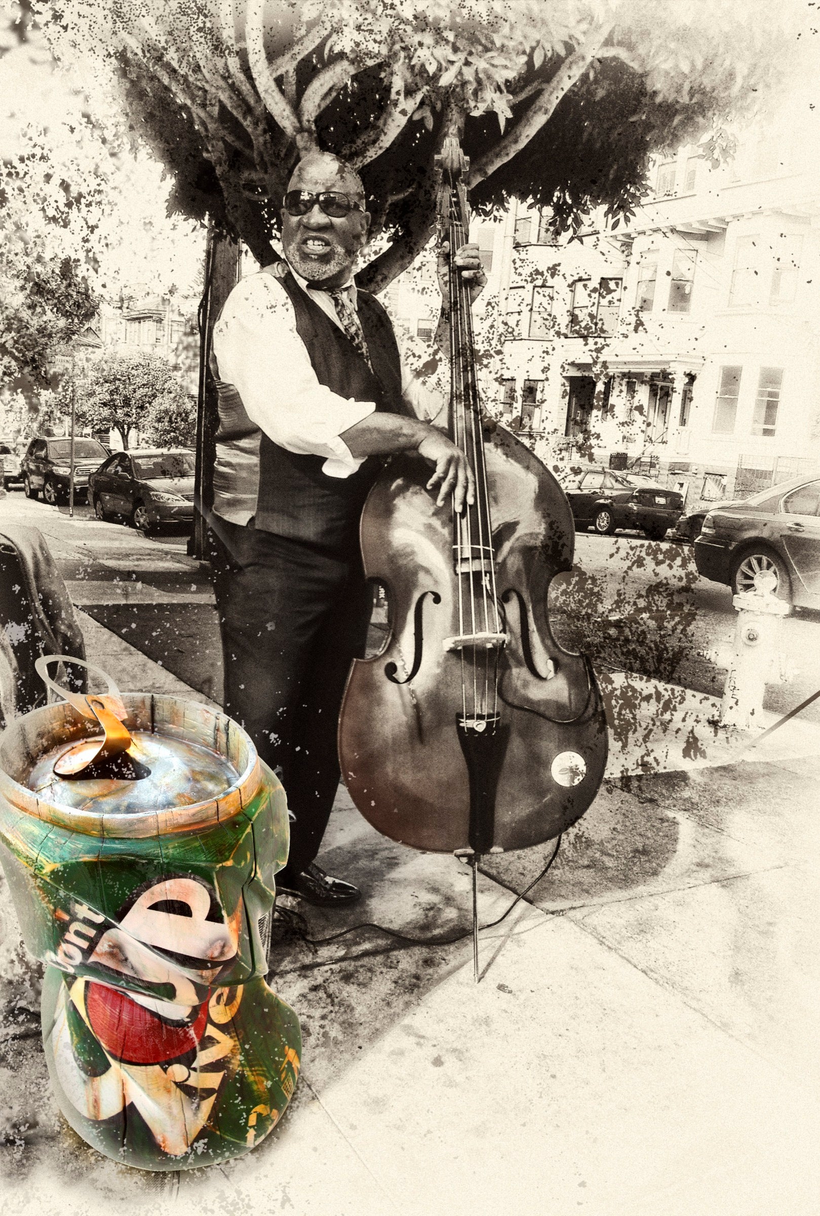 THE BASS IS UPRIGHT. SO IS HE.