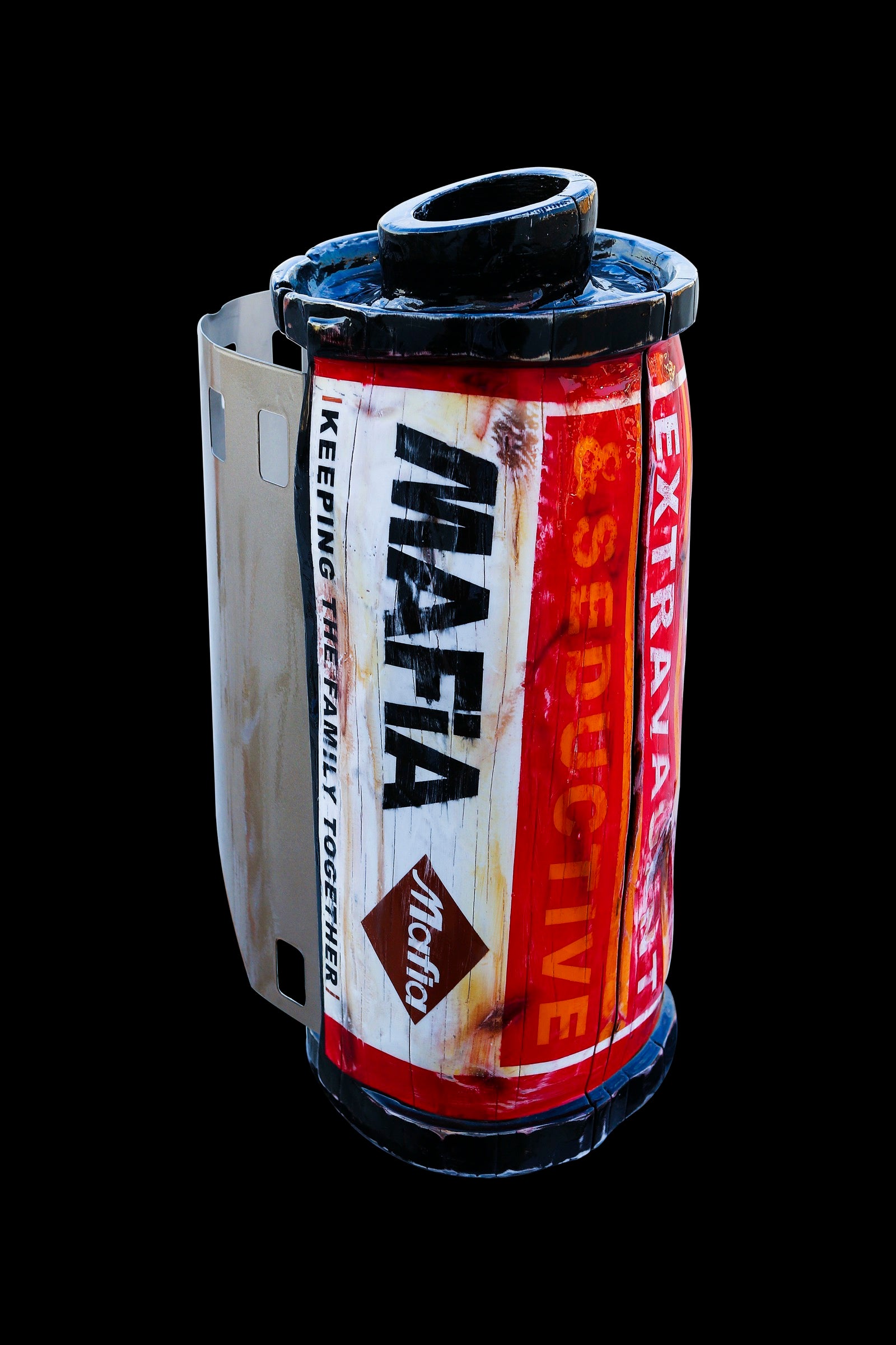 Transforming a classic AGFA film canister into a playful Mafia reference. This hand carved piece merges vintage cinema nostalgia with cheeky wordplay, creating a unique art object that sparks conversation. Ideal for film lovers, art collectors, and those who enjoy clever, unconventional décor with personality.