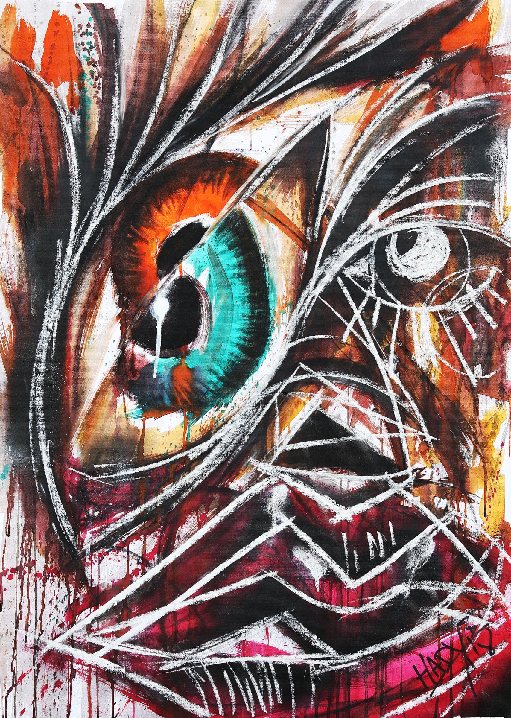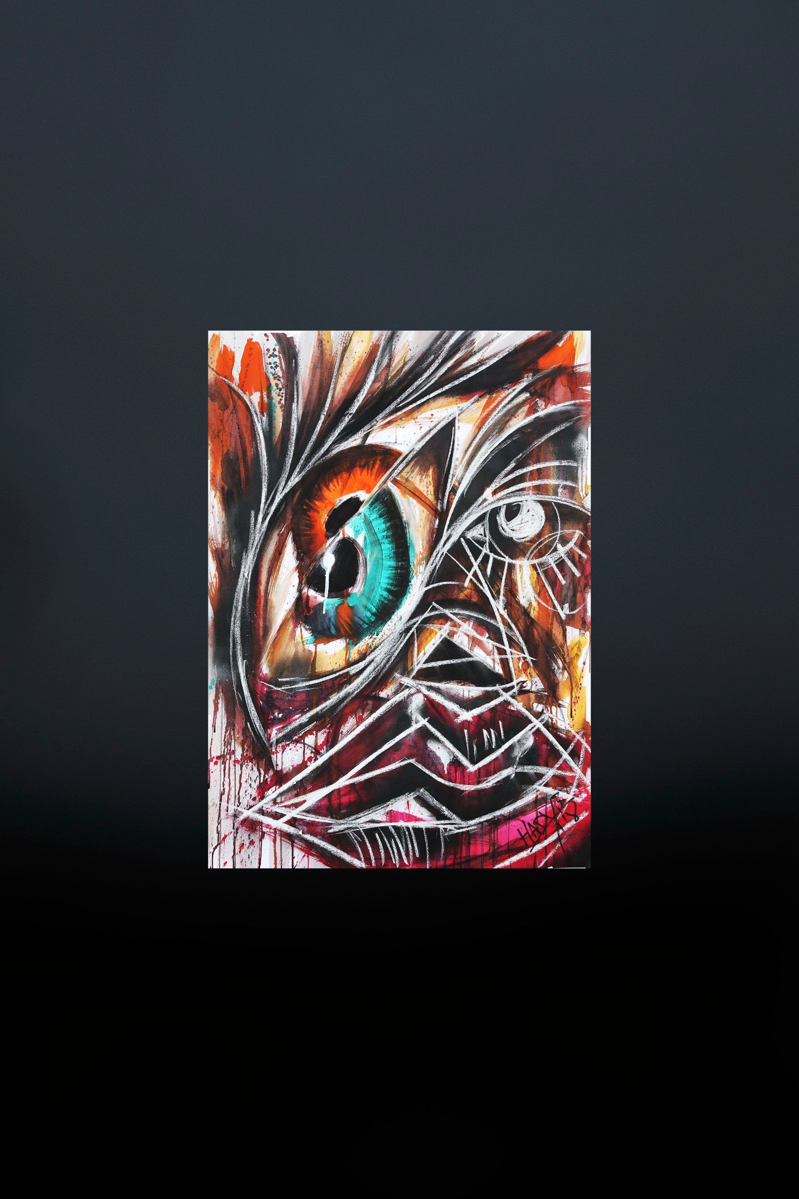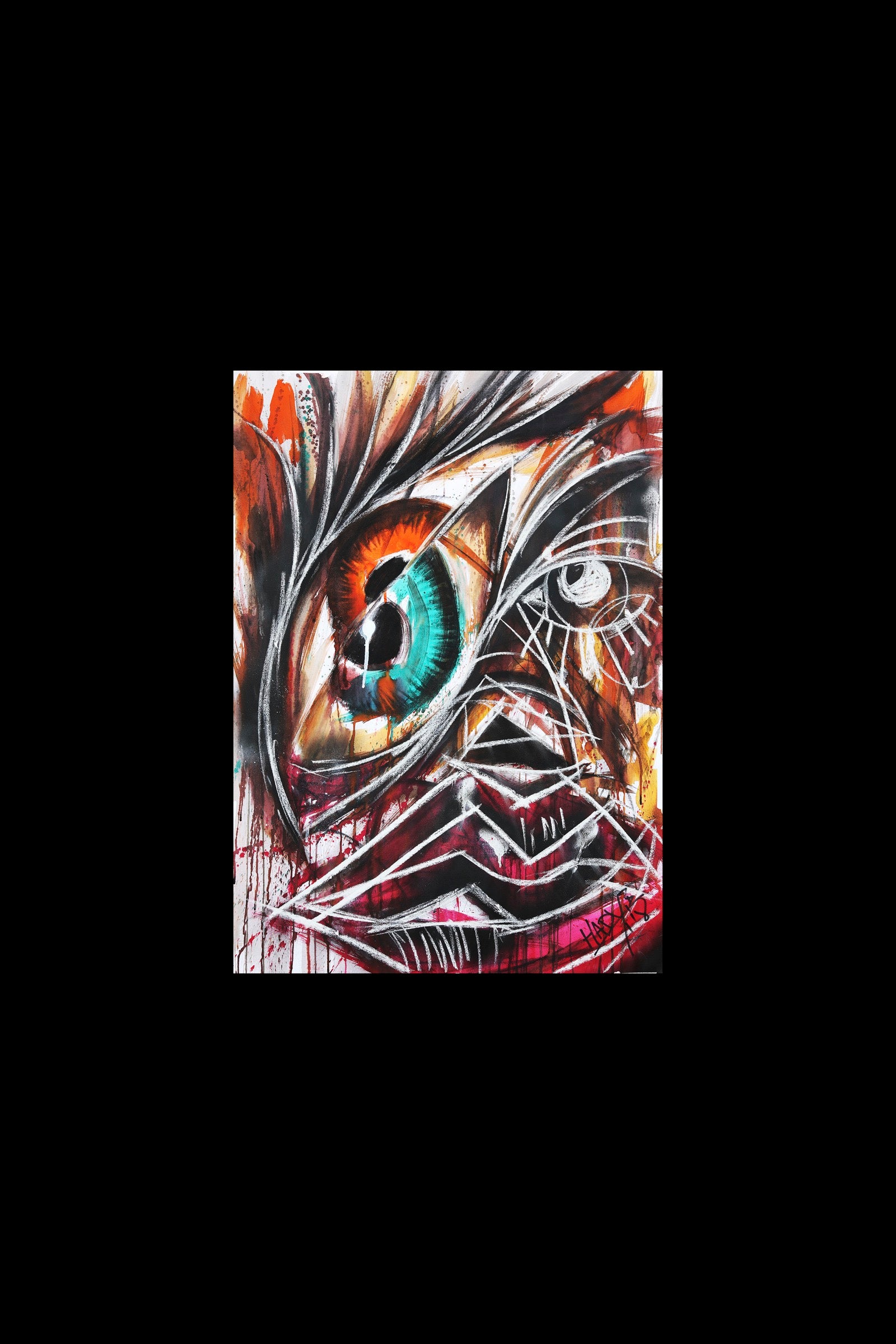 Many Doubts is a portrait of the mind caught in repetition. The single eye multiplies into questions, reflections, and inner echoes that refuse resolution. Lines overlap and hesitate, as if thought itself is pacing in circles. Color vibrates between clarity and unrest, capturing the tension of knowing too much and understanding too little at the same time.