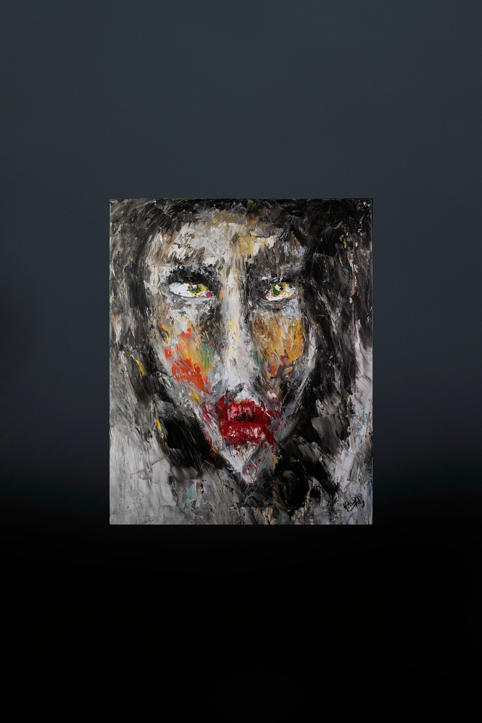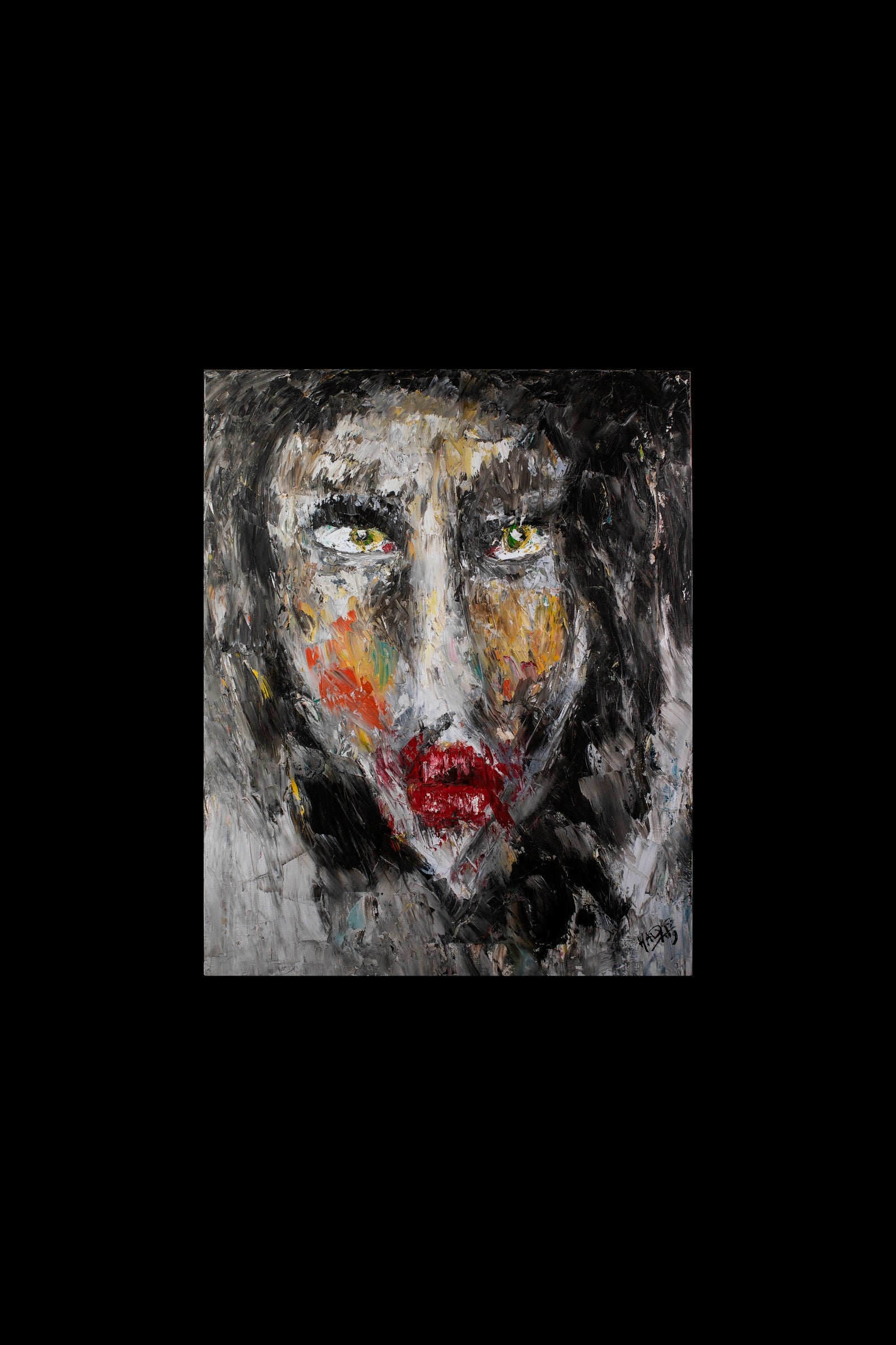 Color gathers around the eyes and mouth like traces of lived experience rather than decoration.