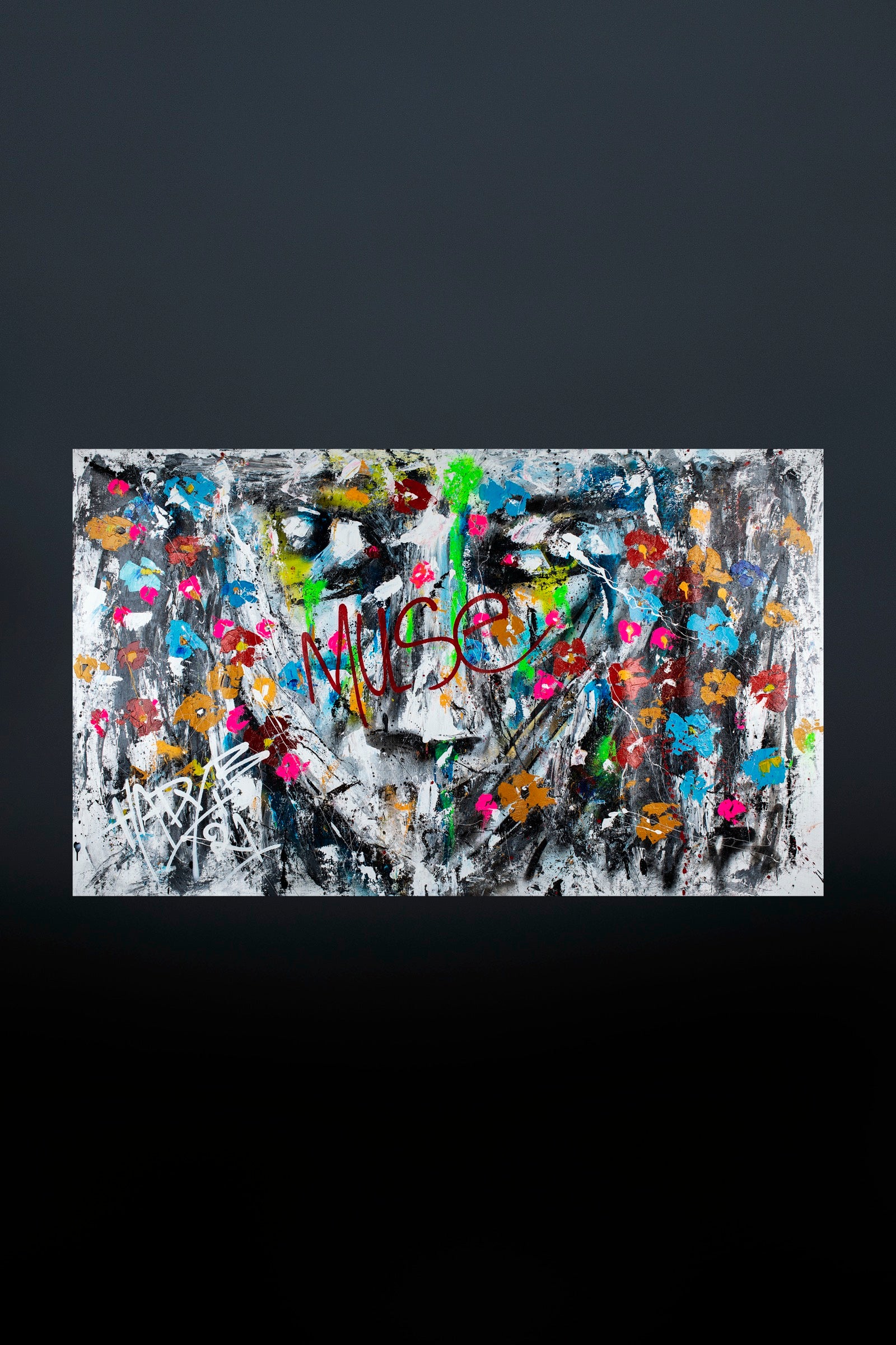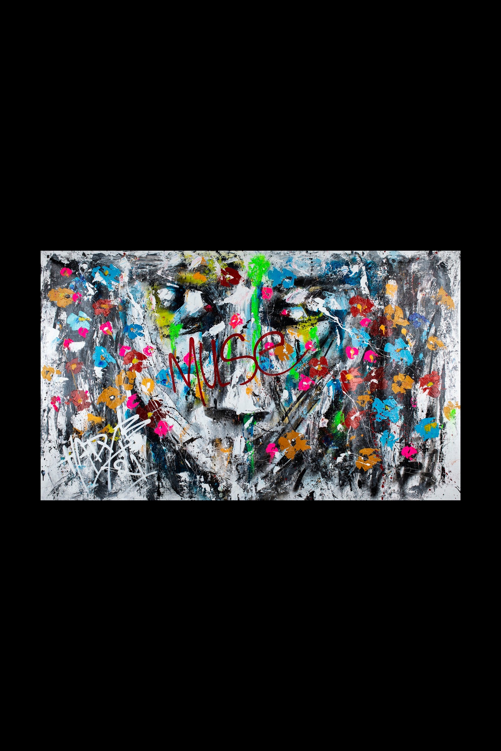 The face dissolves under layers of color marks and impulses becoming a surface where desire memory and obsession collide.