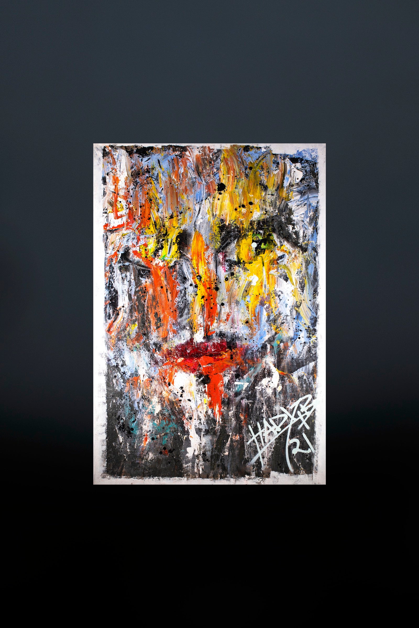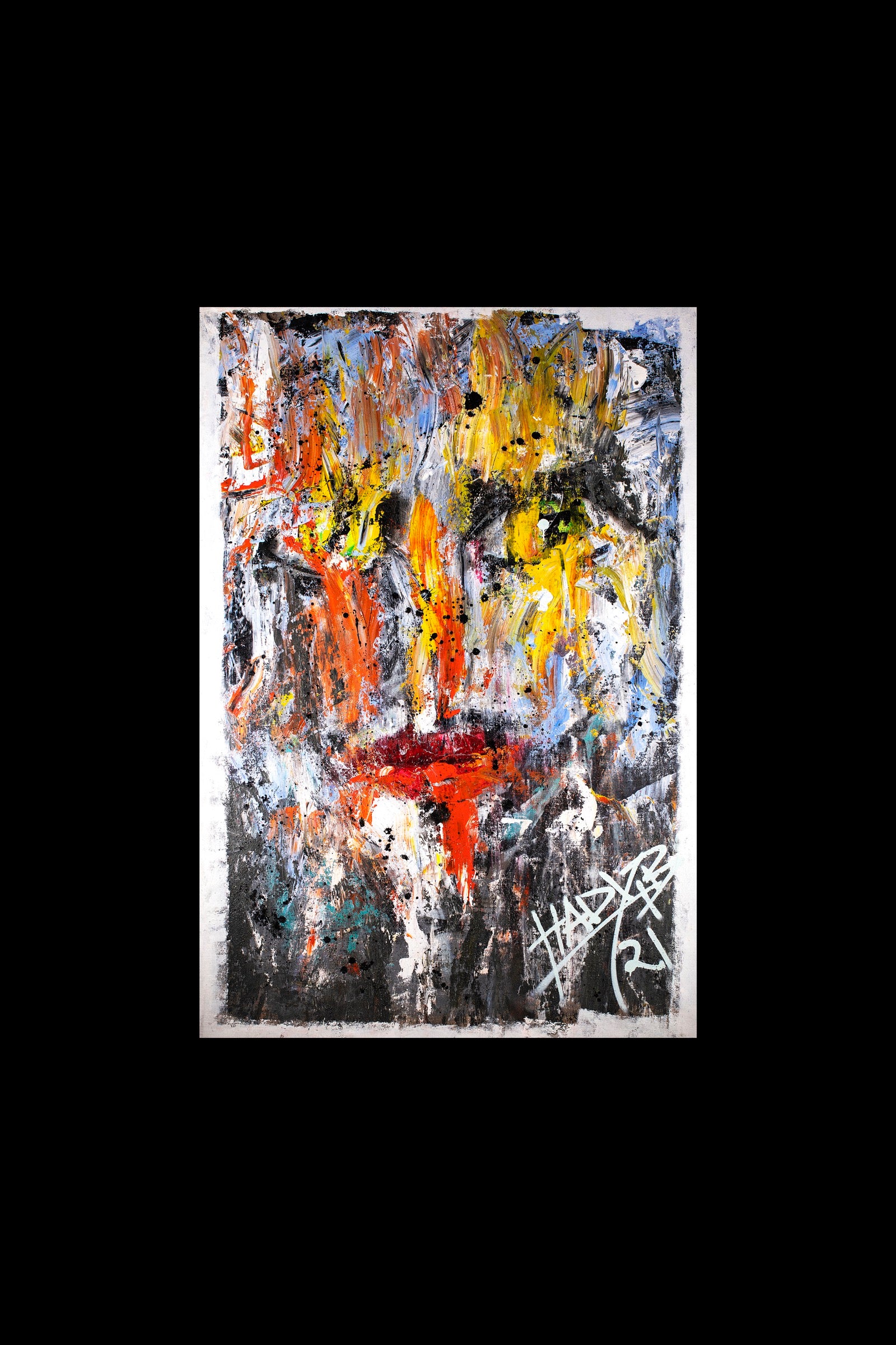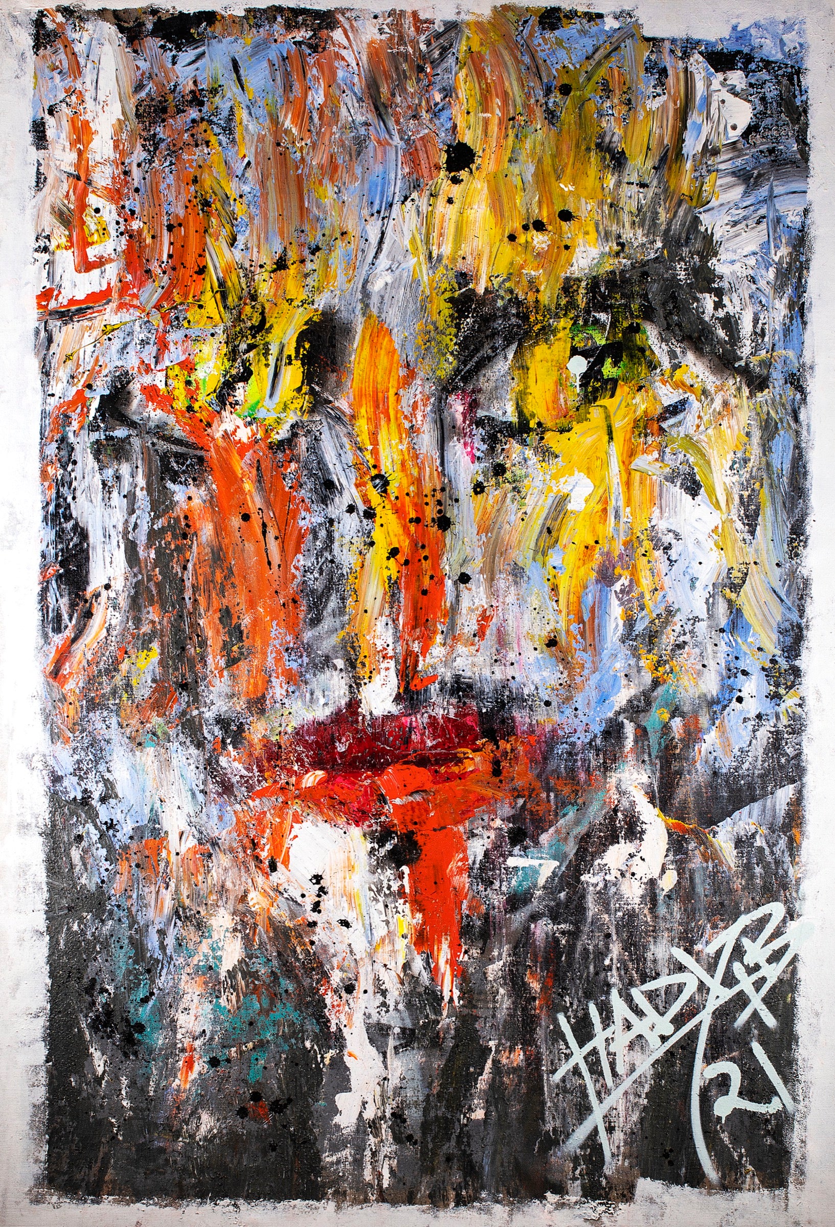 Figures dissolve into vertical tension, as if the painting itself hesitates between unity and division.