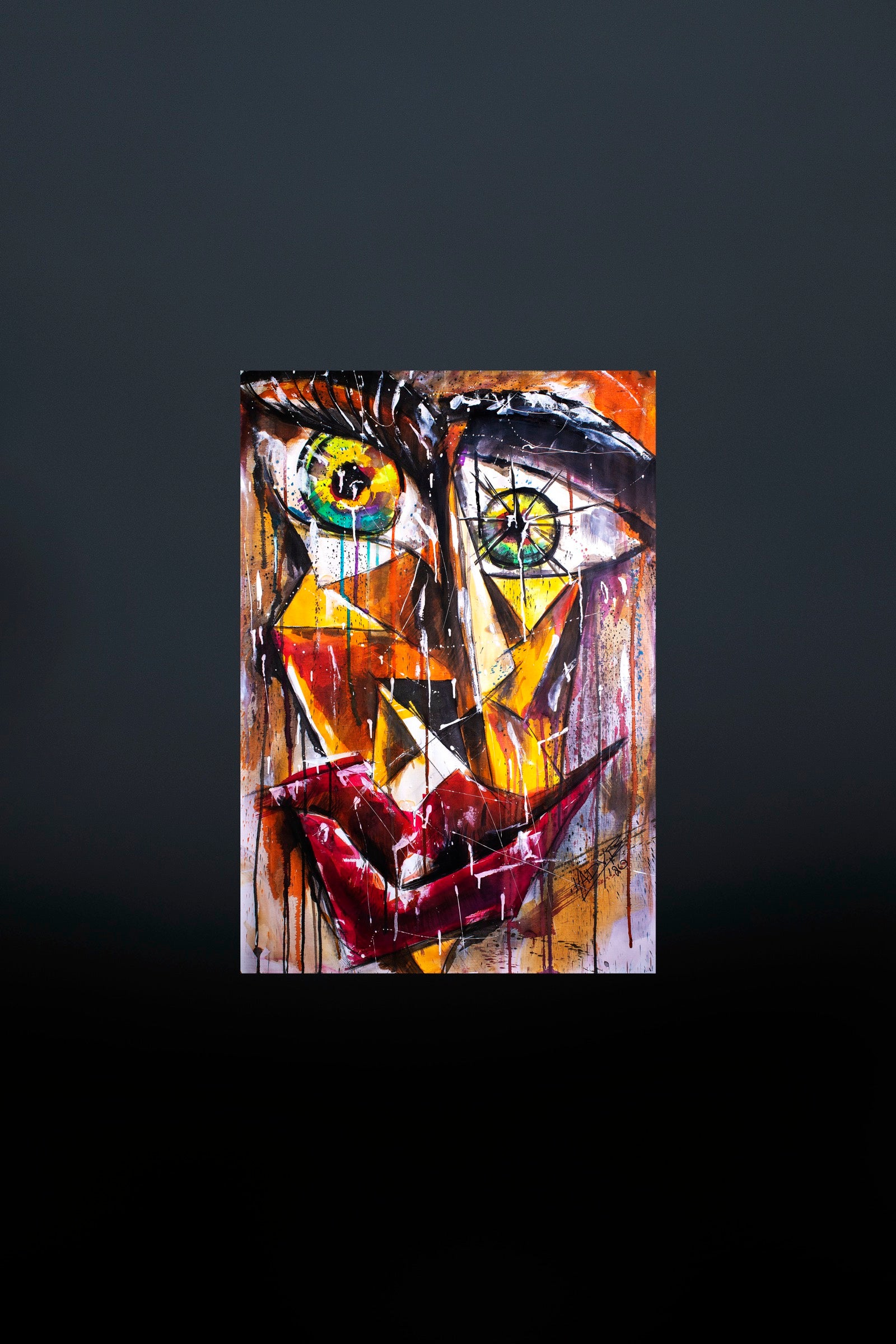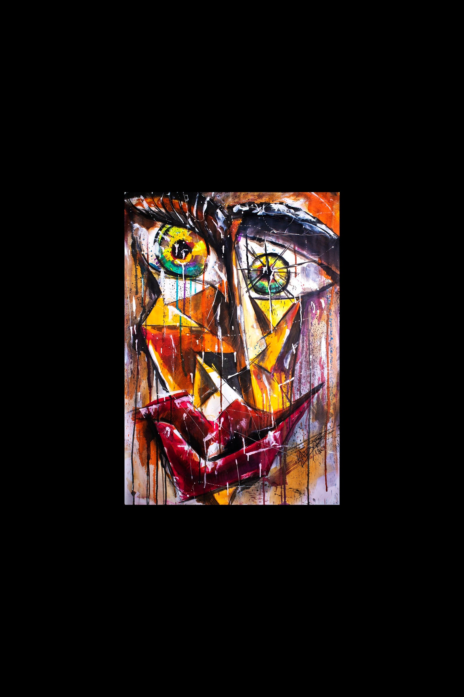 Peace? questions the idea of calm as something stable or easily reached. The face appears composed yet fractured, held together by tension rather than serenity. Sharp angles and dripping color suggest that peace here is fragile, negotiated moment by moment, never absolute. The work captures that uneasy balance where clarity and unrest coexist, where peace is not an end state but a continuous inner struggle.