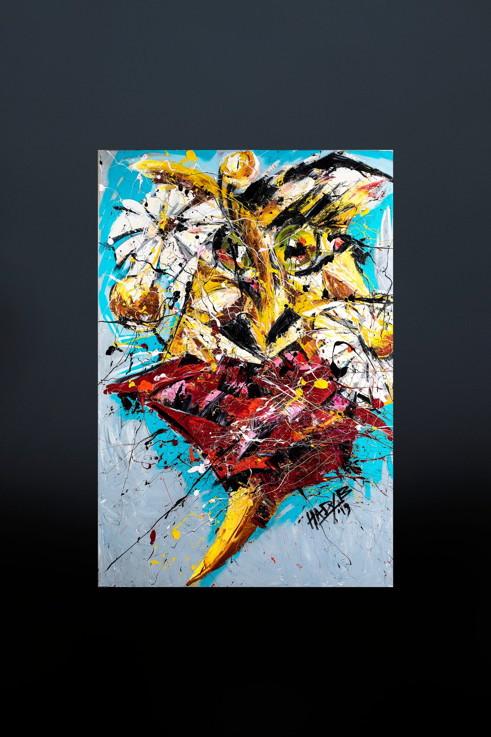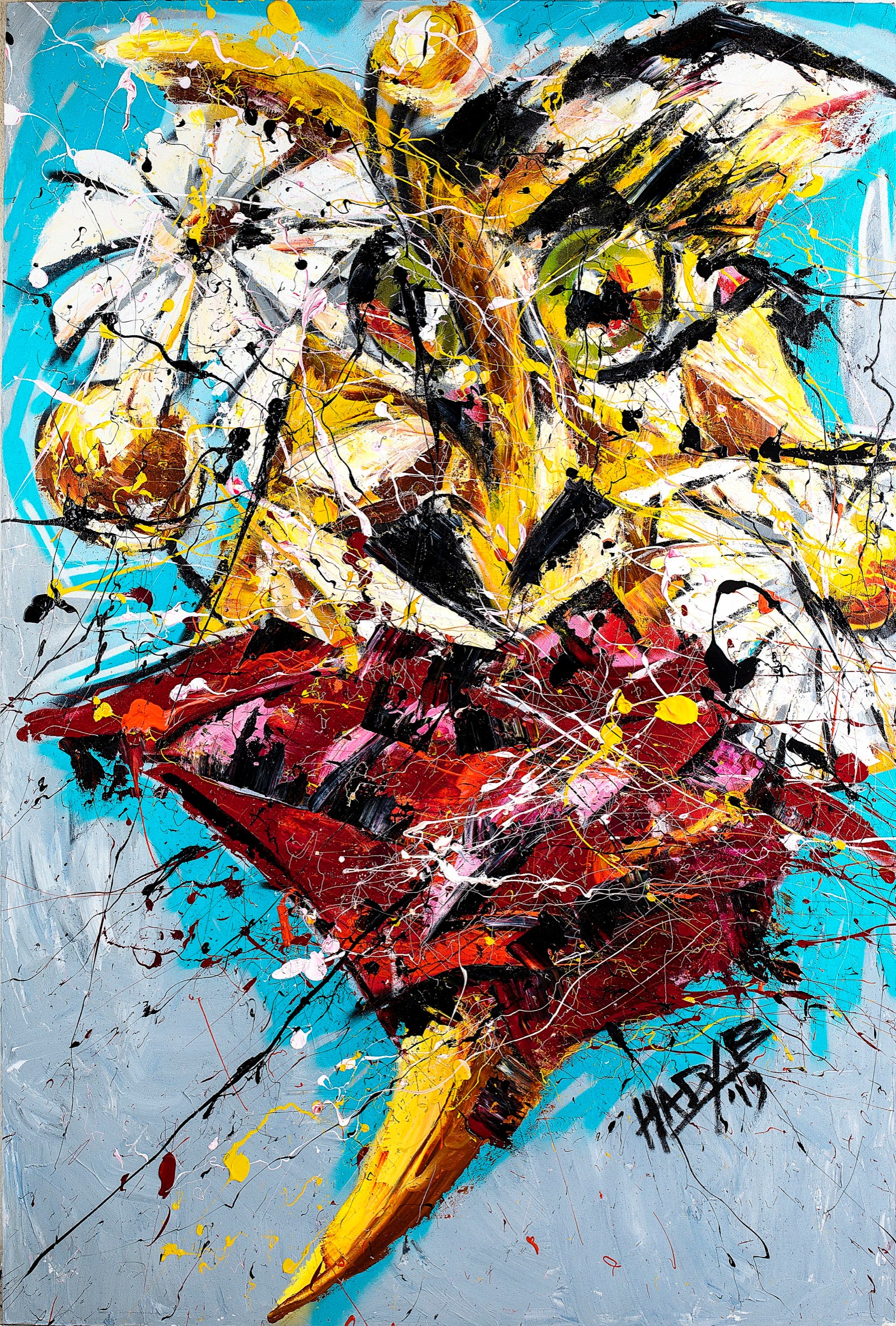 Yellow Fantasy is an eruption of desire and instinct pushed to excess. The figure dissolves into color, splatter, and sharp gestures, caught between seduction and combustion. Yellow dominates the surface like heat and obsession, while red cuts through it with urgency and flesh. The painting feels impulsive and unapologetic, driven by movement rather than precision. It exists in a space where fantasy overwhelms structure and emotion overrides control.