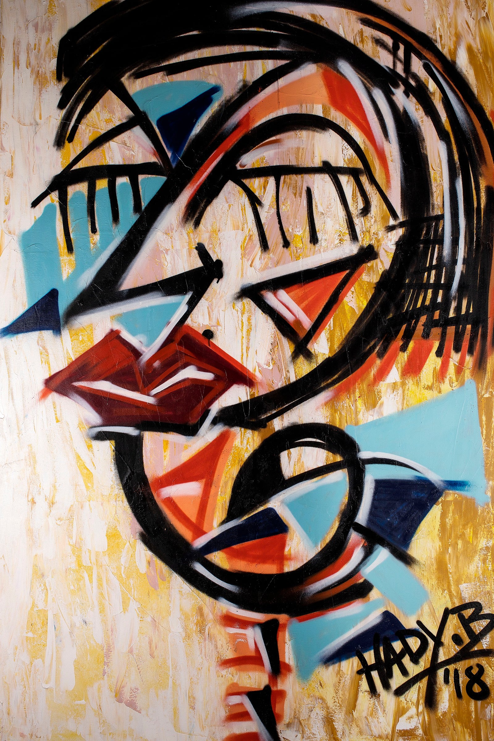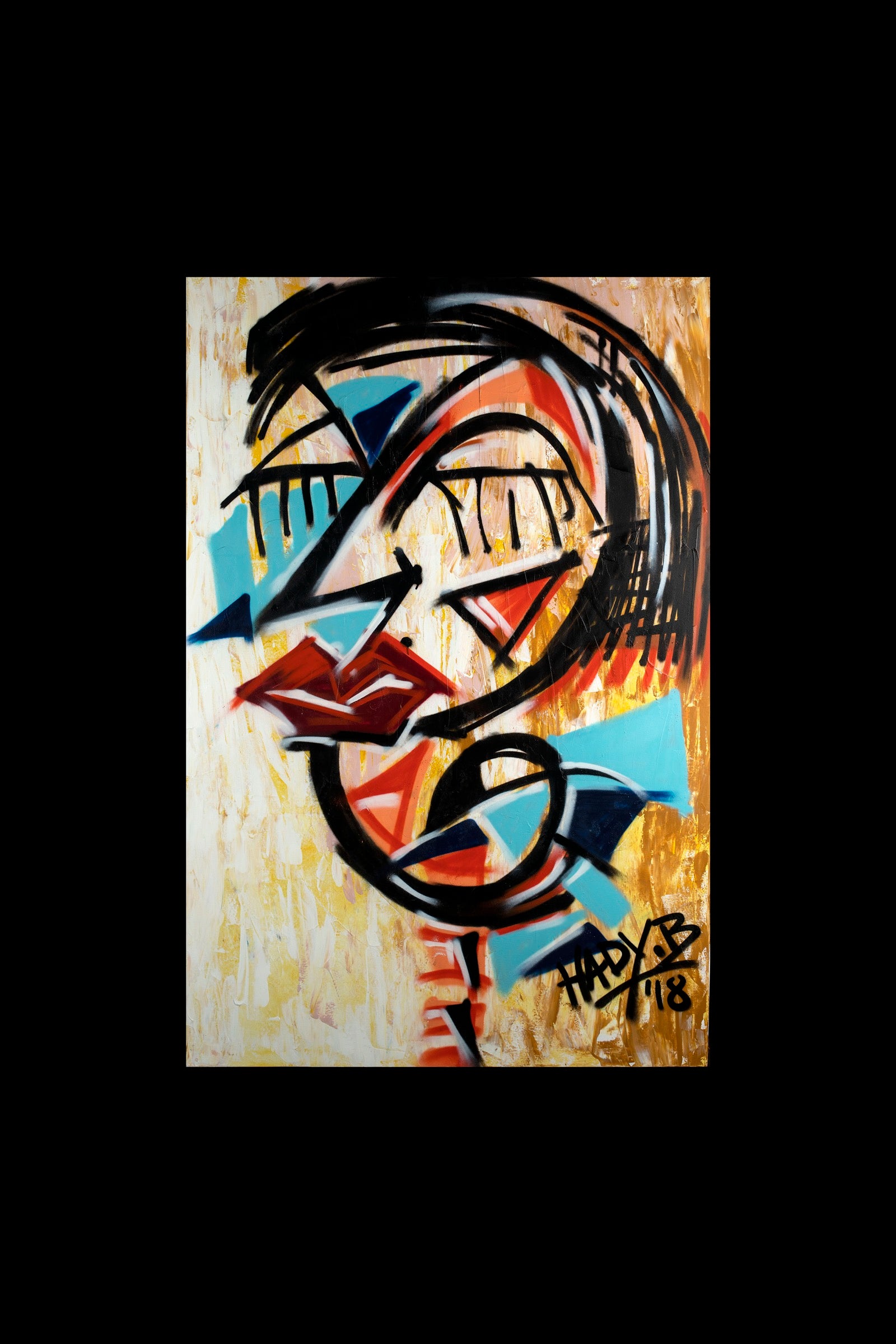The face is fractured by sharp geometry and directional movement as if thought arrives faster than clarity.