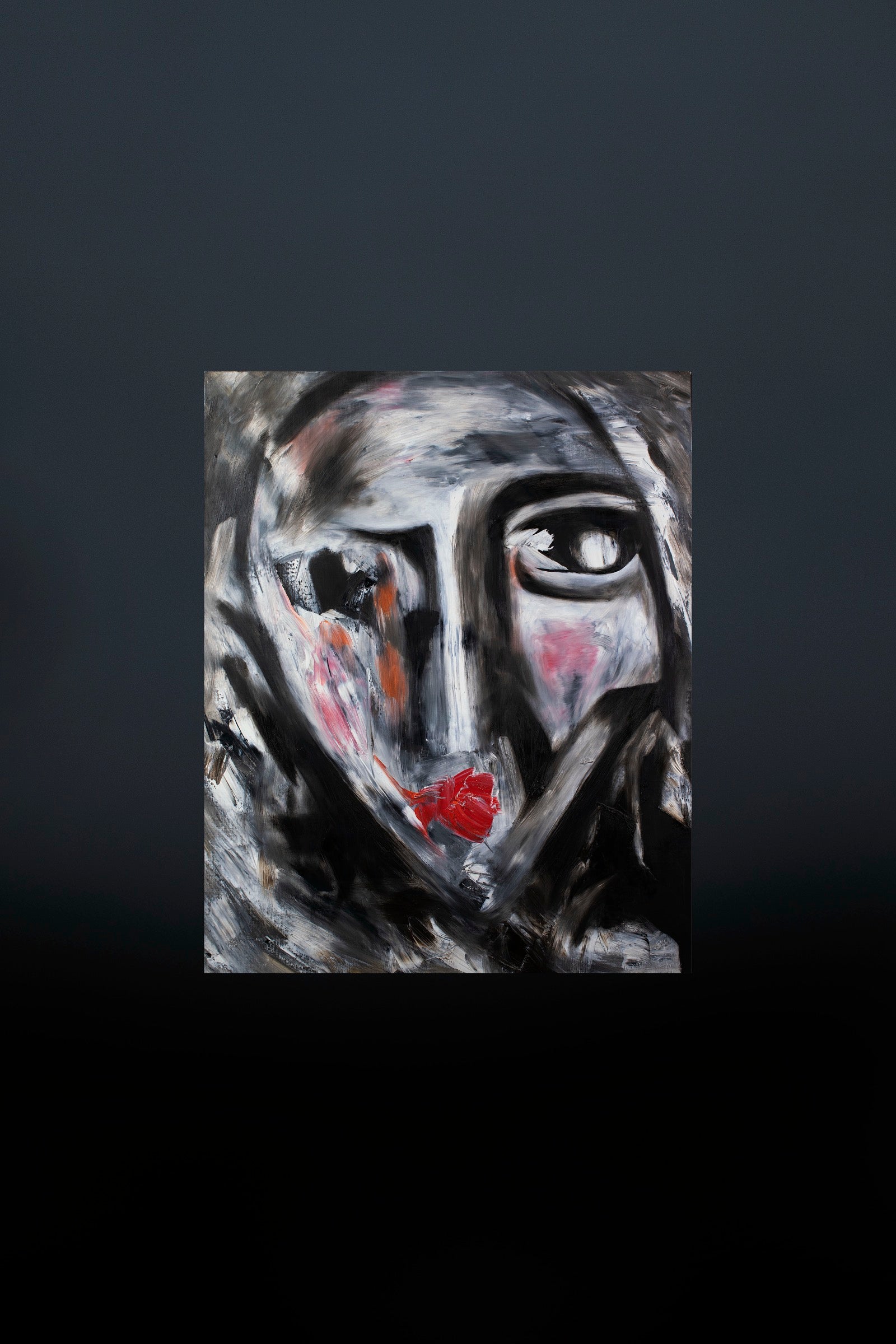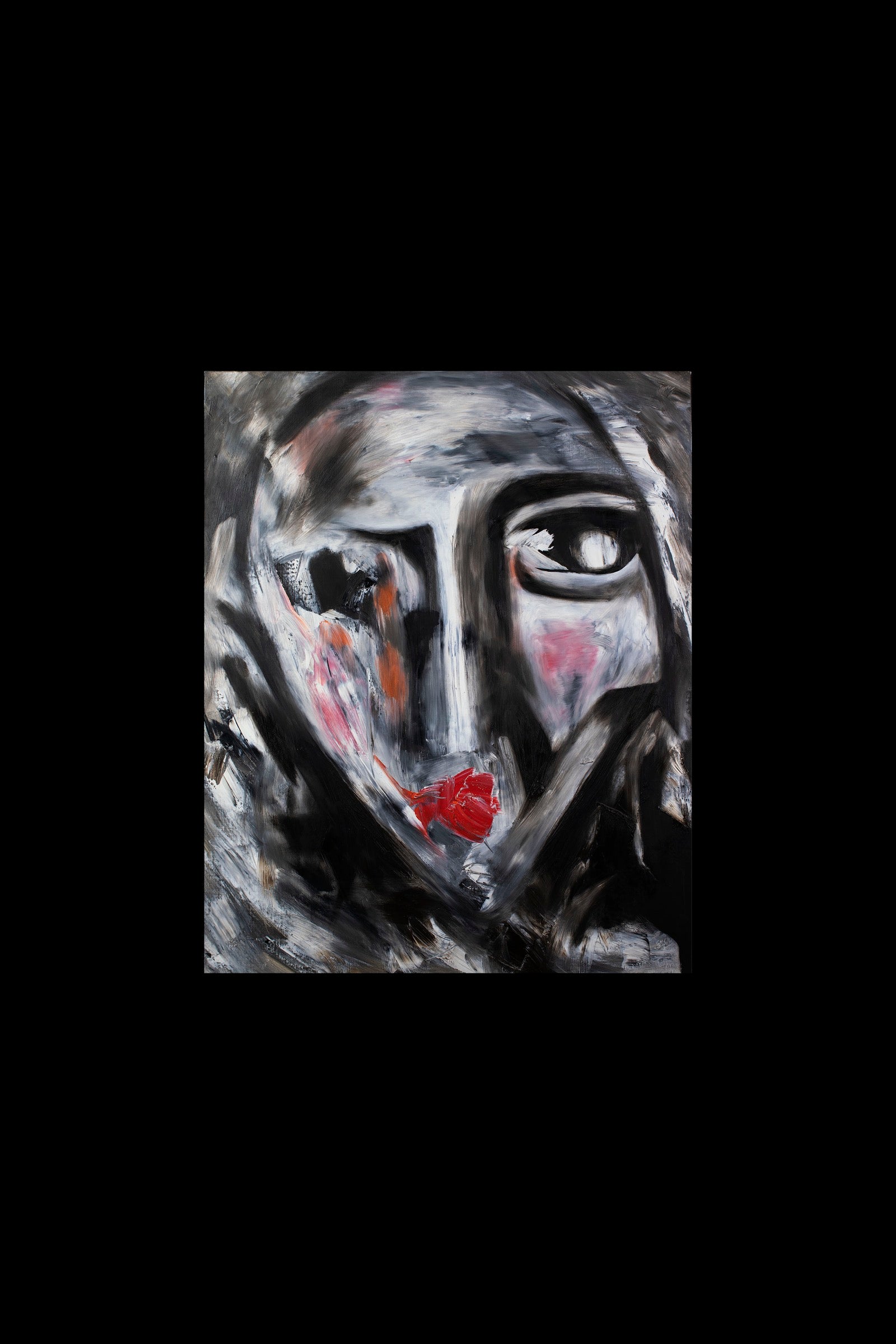 The face appears fractured yet focused as if emotion has condensed into a single point.