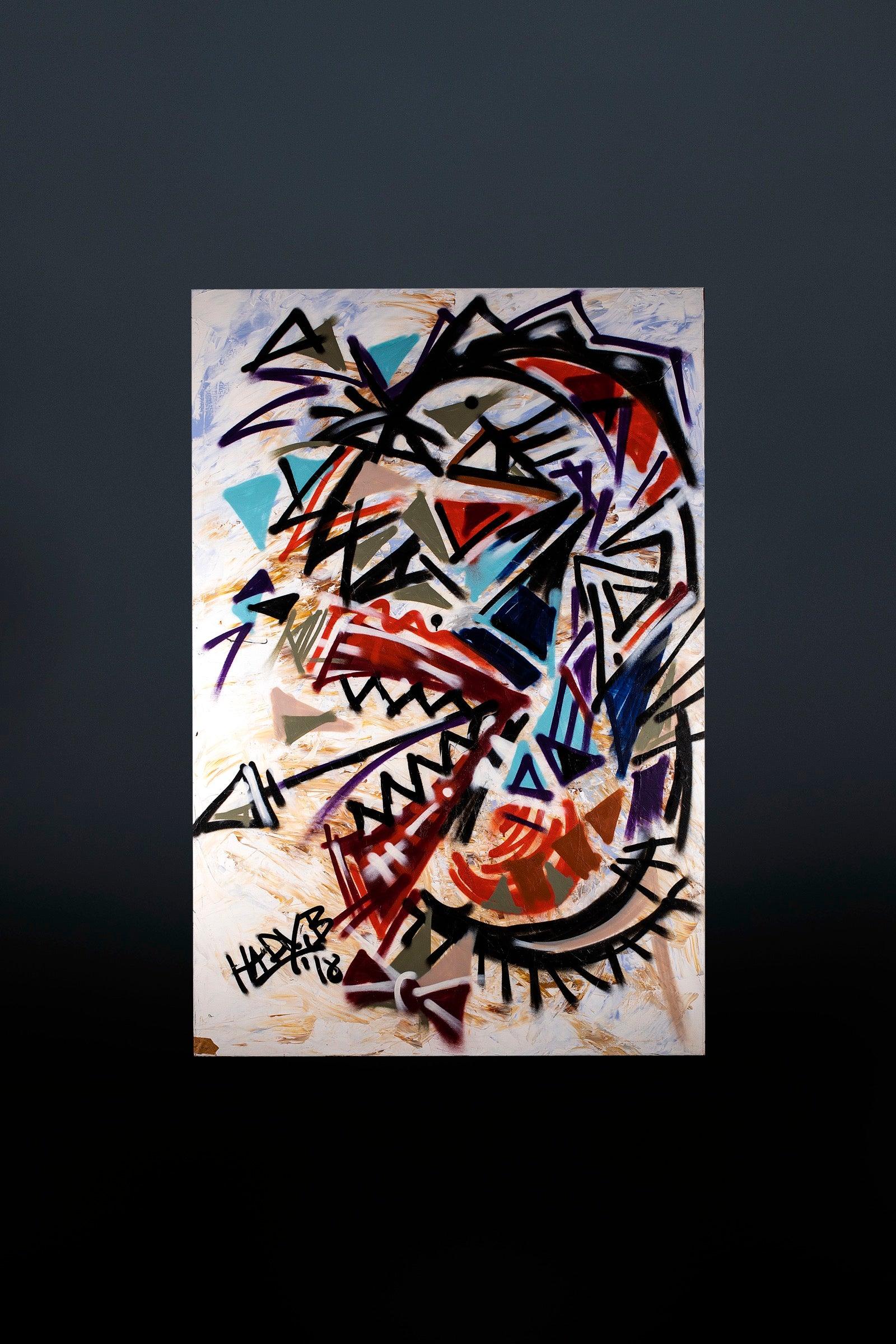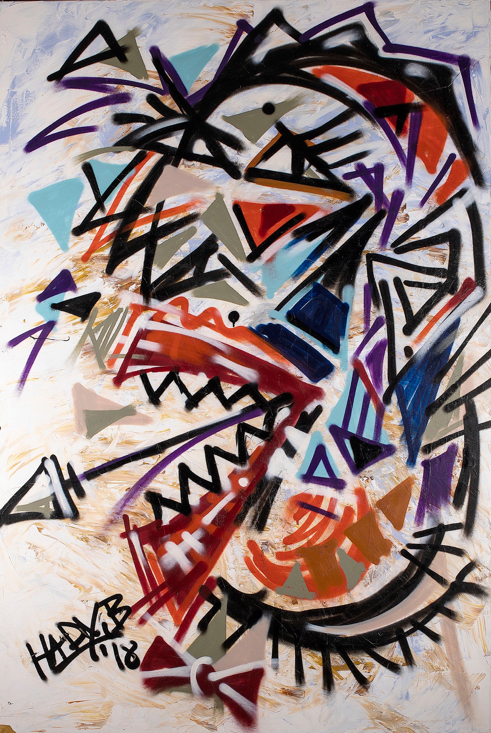 The composition fractures direction and form, pushing movement aggressively toward the edge.