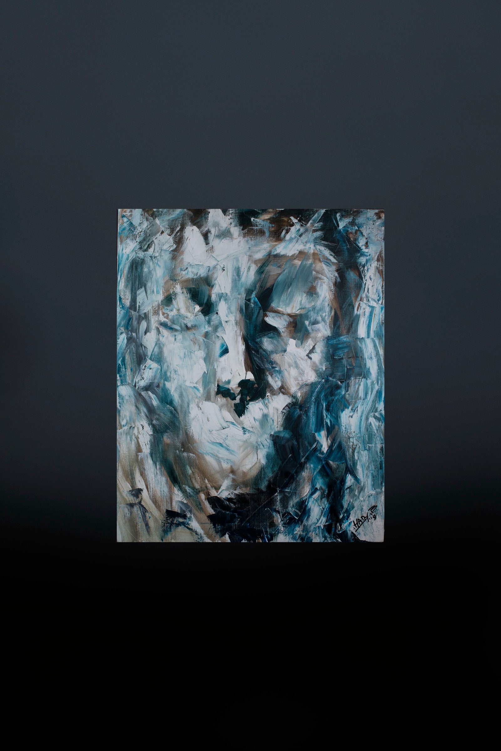 This painting speaks of silence, self examination, and the slow unraveling that happens when one listens too closely to their own mind.