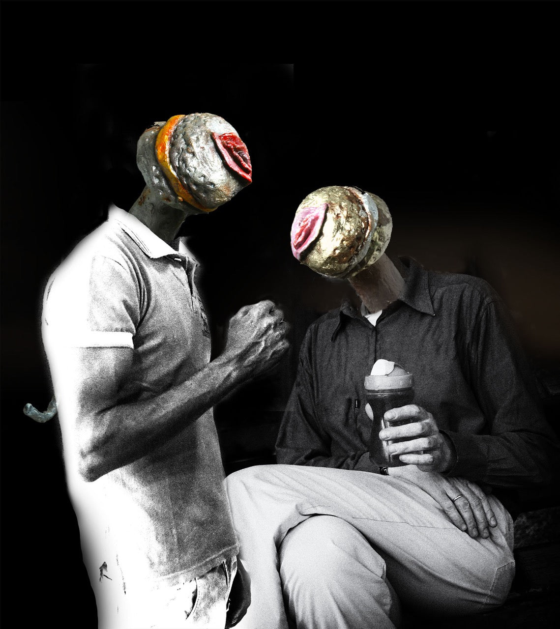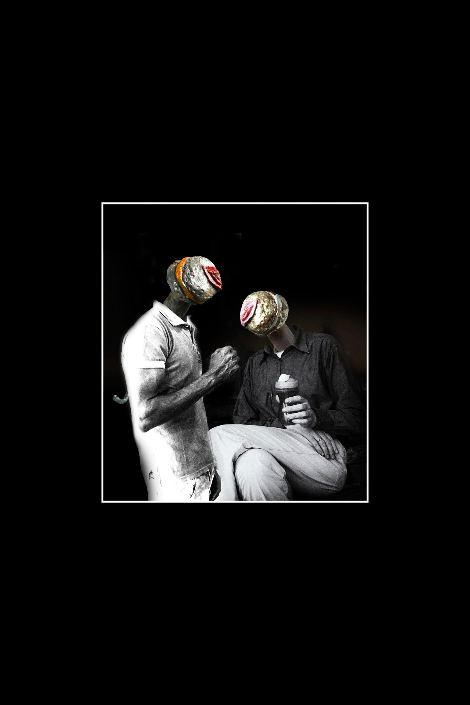 A COLLISION OF SCULPTURE, PHOTOGRAPHY, AND DIGITAL MANIPULATION. THIS WORK IS CONSTRUCTED FROM ORIGINAL IMAGES OF BRONZE SCULPTURES FROM THE FAMILLIA SERIES, LAYERED WITH PHOTOGRAPHIC ELEMENTS AND REASSEMBLED THROUGH DIGITAL COLLAGE.