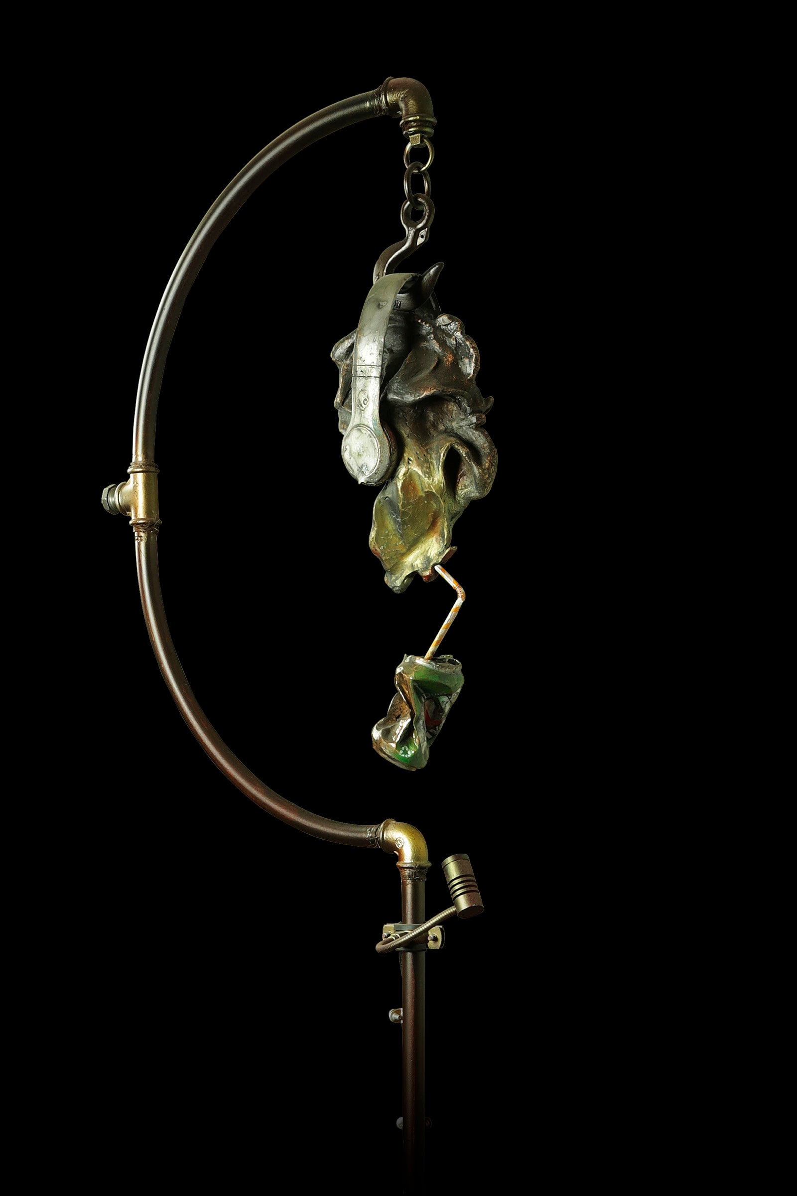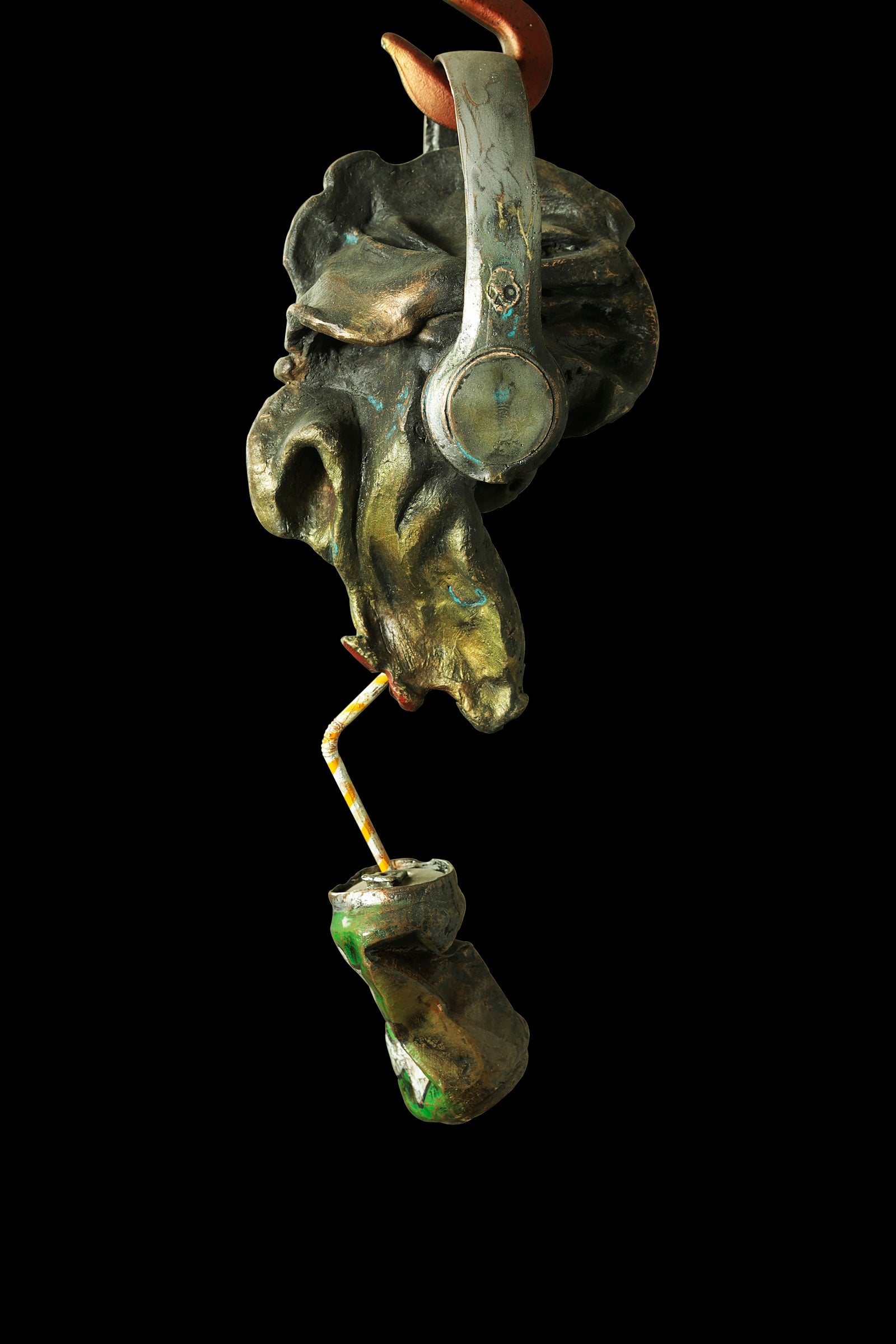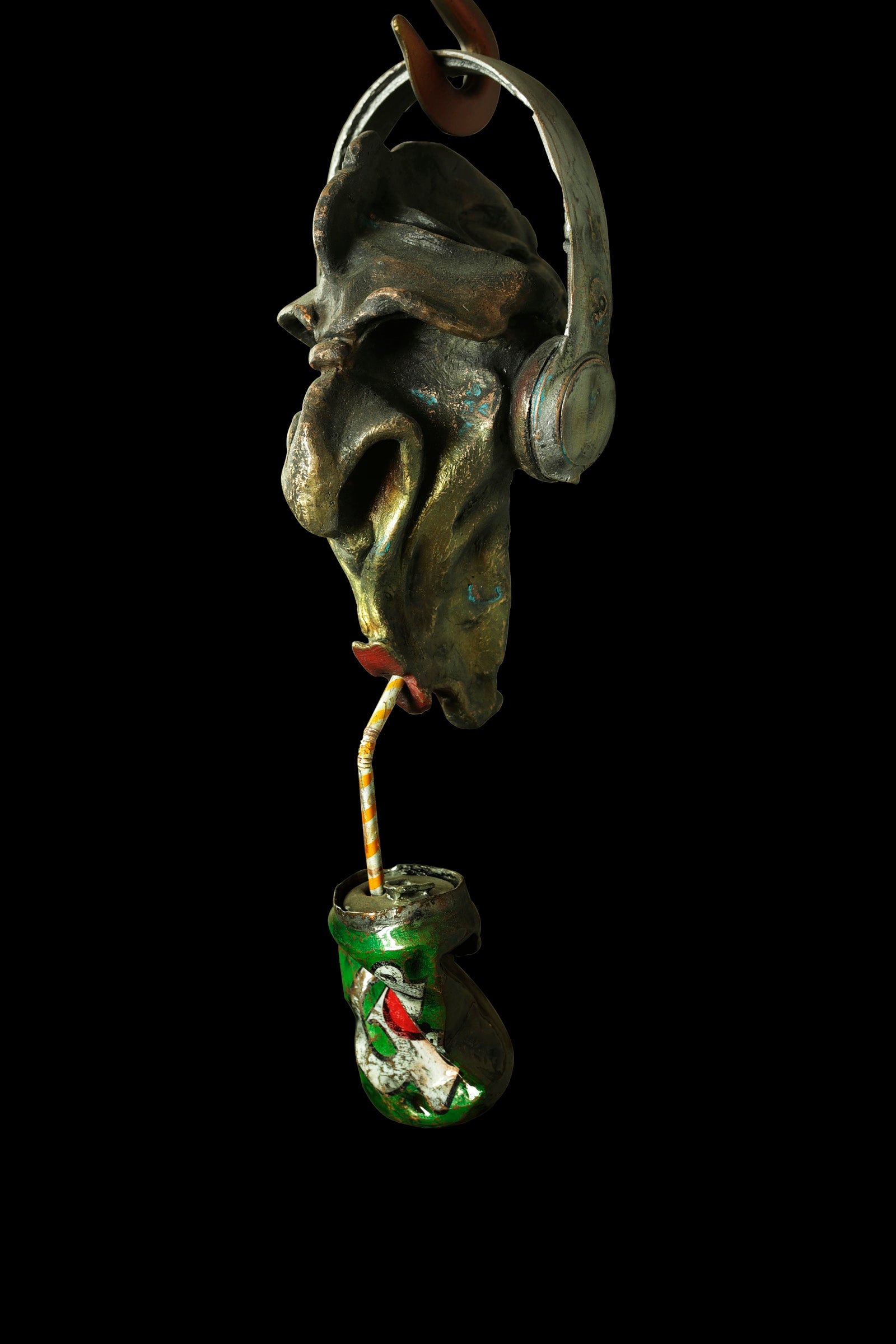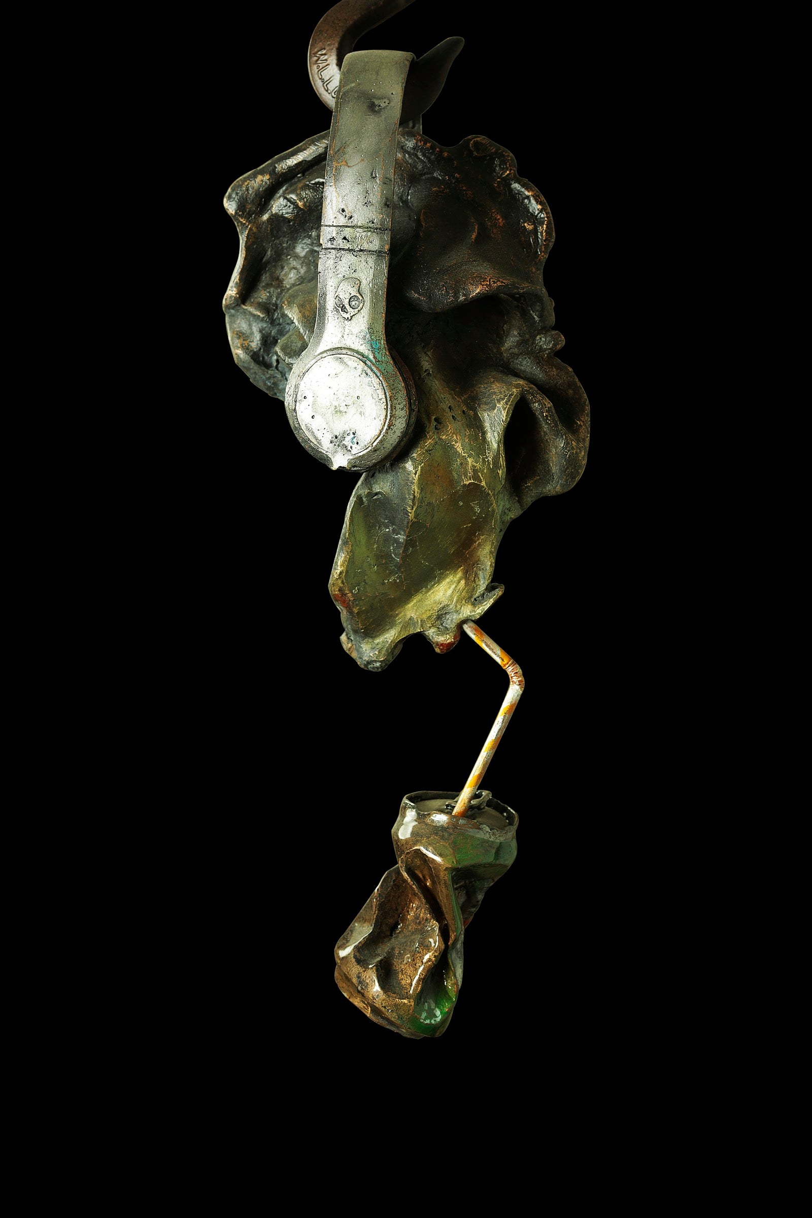 HEADPHONES AND A CRUSHED CAN CARRY A MESSAGE OF RESILIENCE, EVEN AS DEPENDENCY QUIETLY TAKES HOLD.