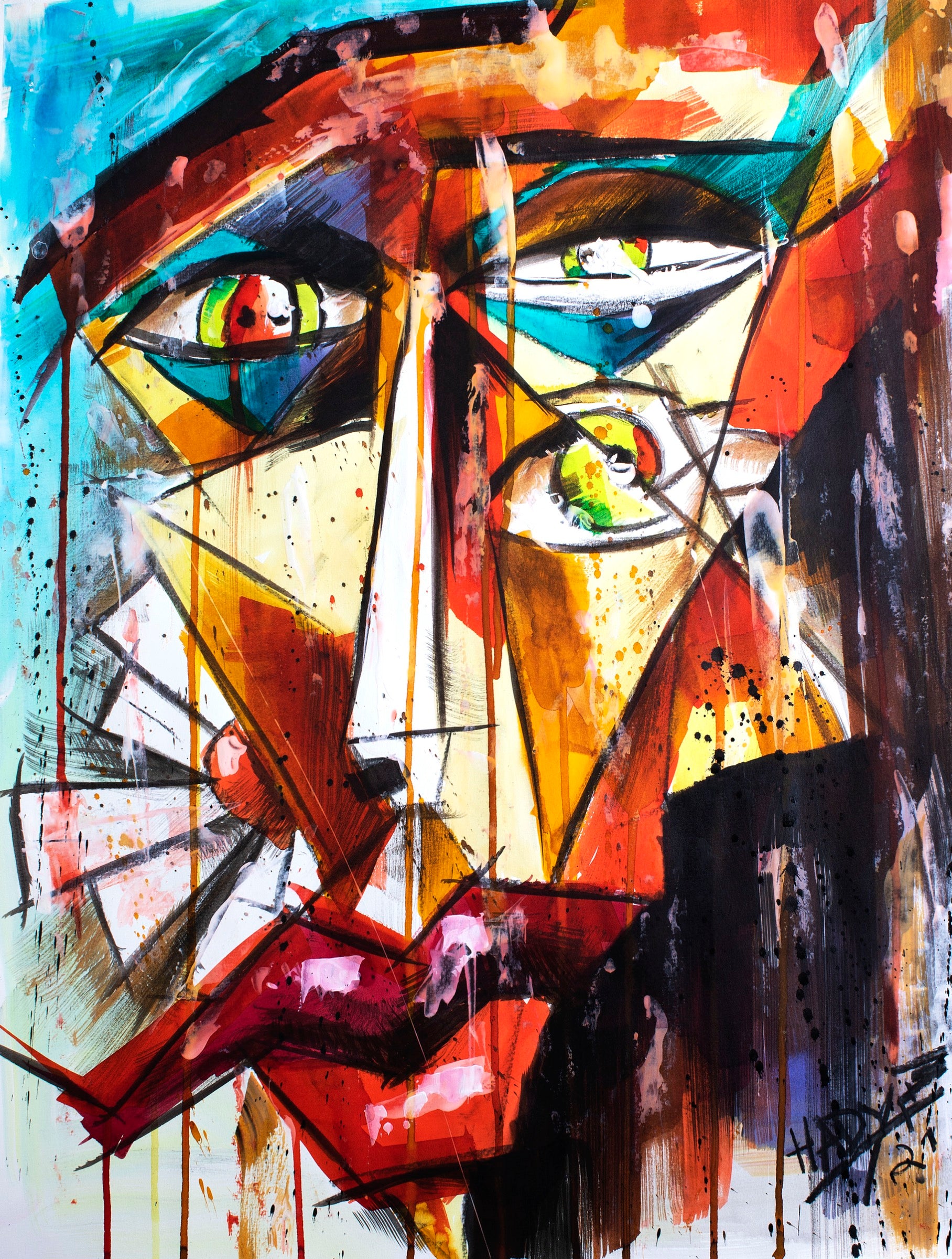 Springtime carries the feeling of reawakening after inner winter. The face emerges through fresh color and fractured light, as if thought and emotion are thawing at the same time. The eyes are alert, curious, newly alive, holding both vulnerability and quiet optimism. Movement is fluid and spontaneous, guided more by instinct than structure. This work speaks about renewal, about the moment when perception softens and life begins to breathe again from within.