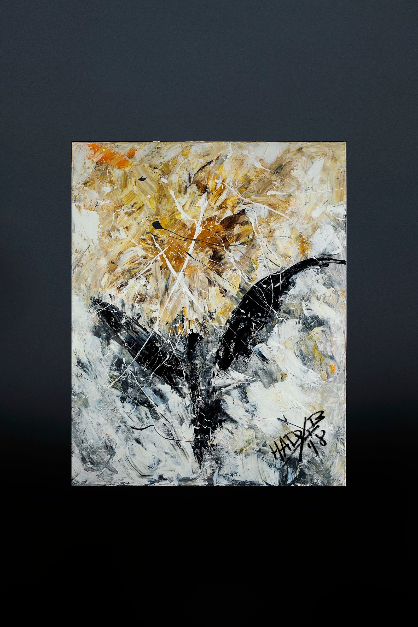 Yellow erupts like light trying to escape, while black cuts through with raw intent.
