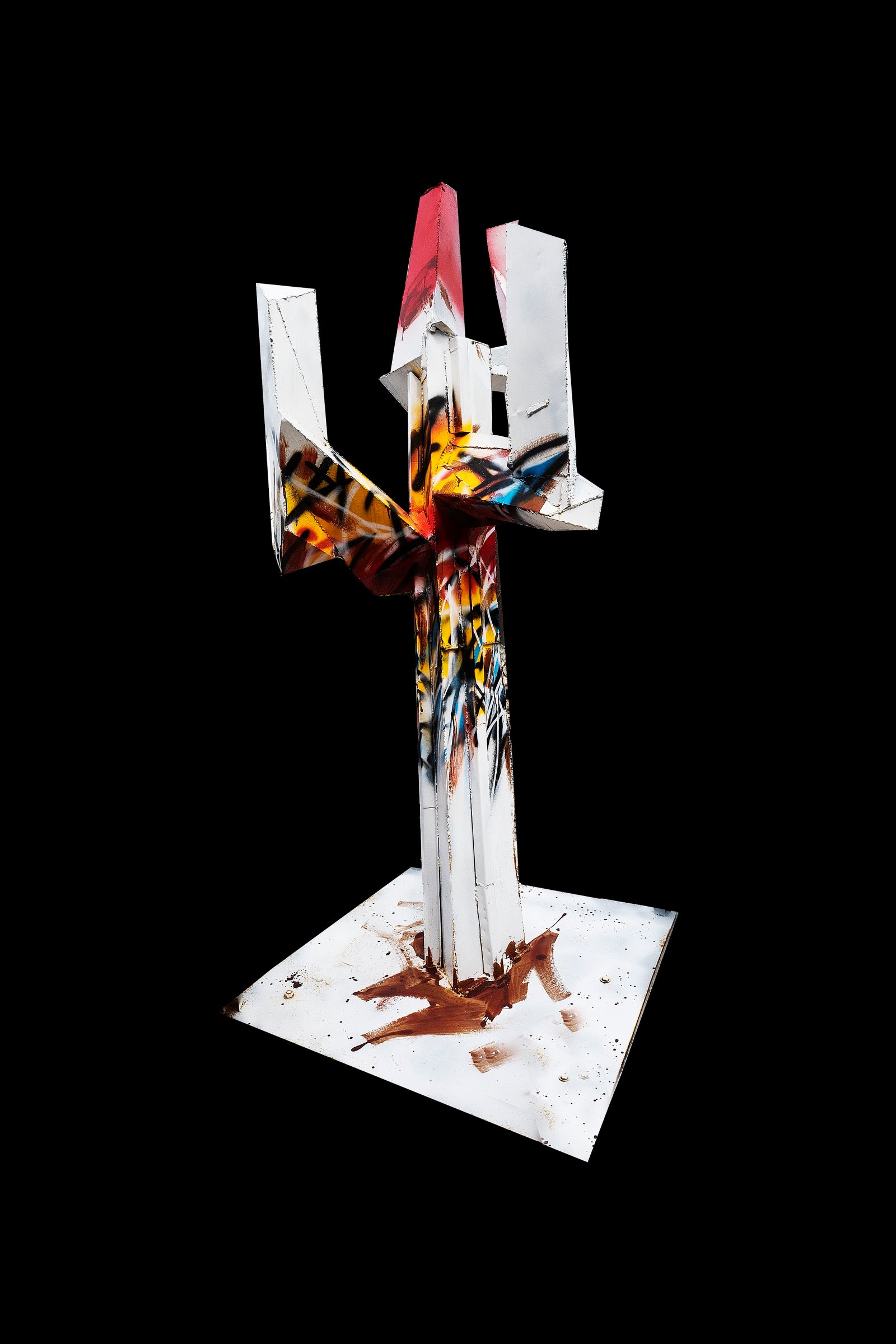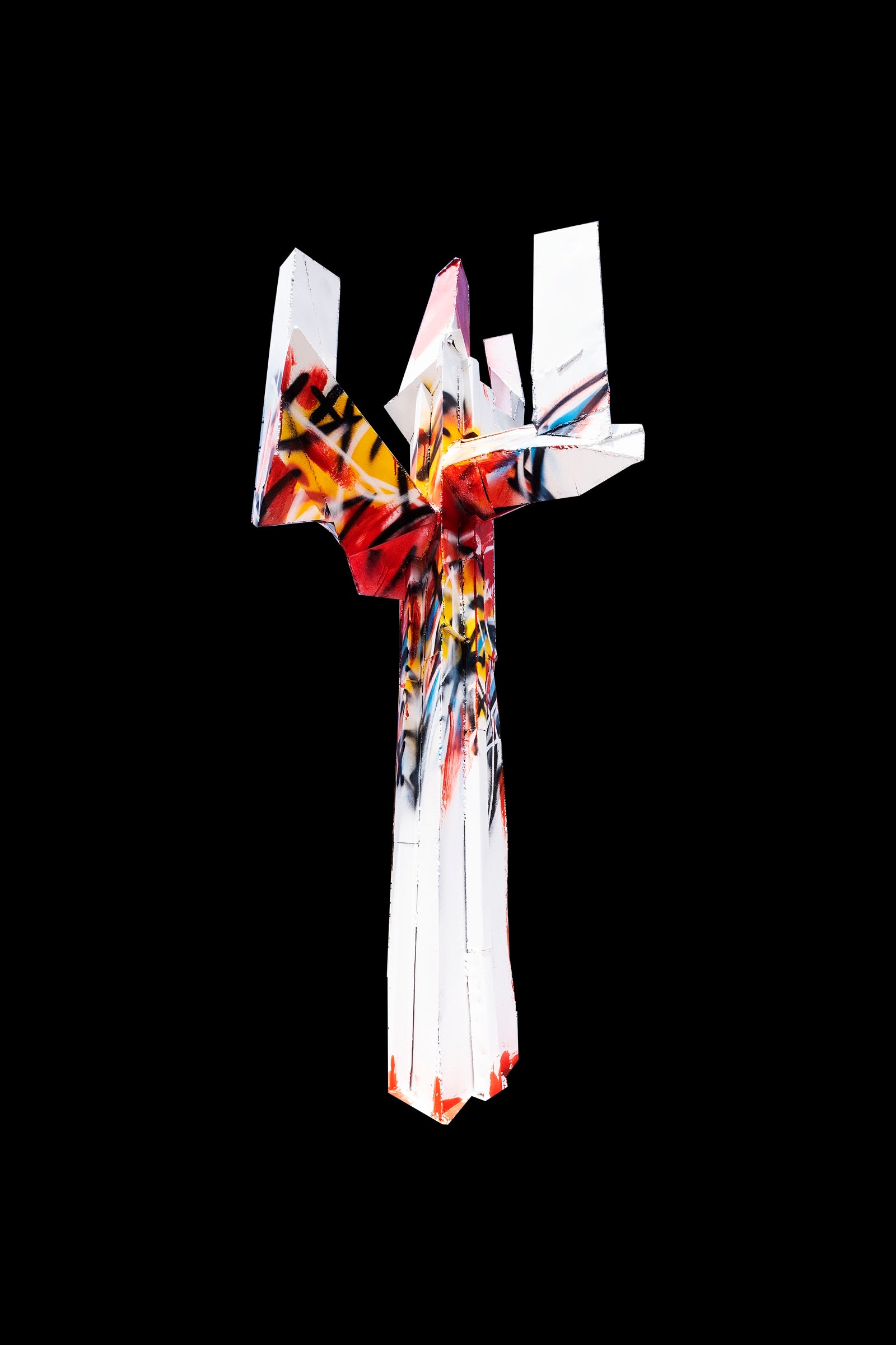 A vertical monument sealed in white.