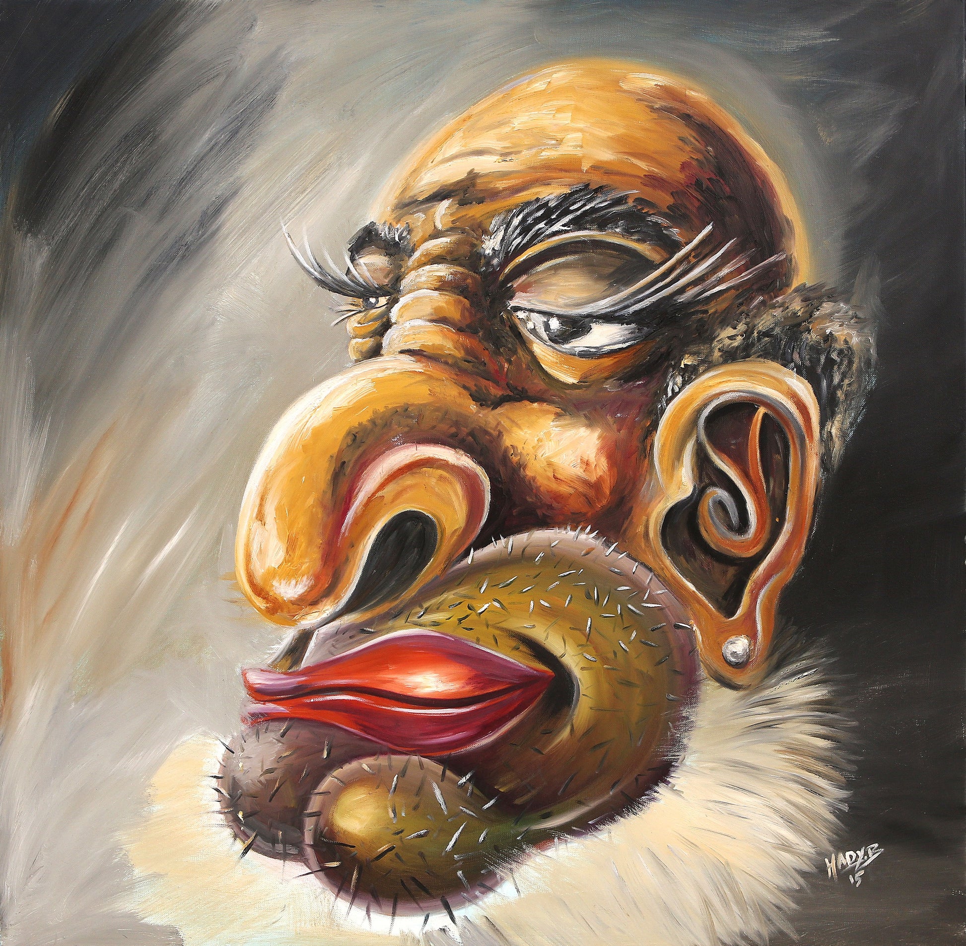 A face shaped by habits rather than time. AGENT SMITH is a character built from excess, routine, and quiet arrogance. The features swell and distort as if molded by comfort and repetition, a man who has lived well inside his own rules. There is humor here, but it is sharp. This is not caricature for laughter. It is recognition. The kind that stings because it’s accurate.