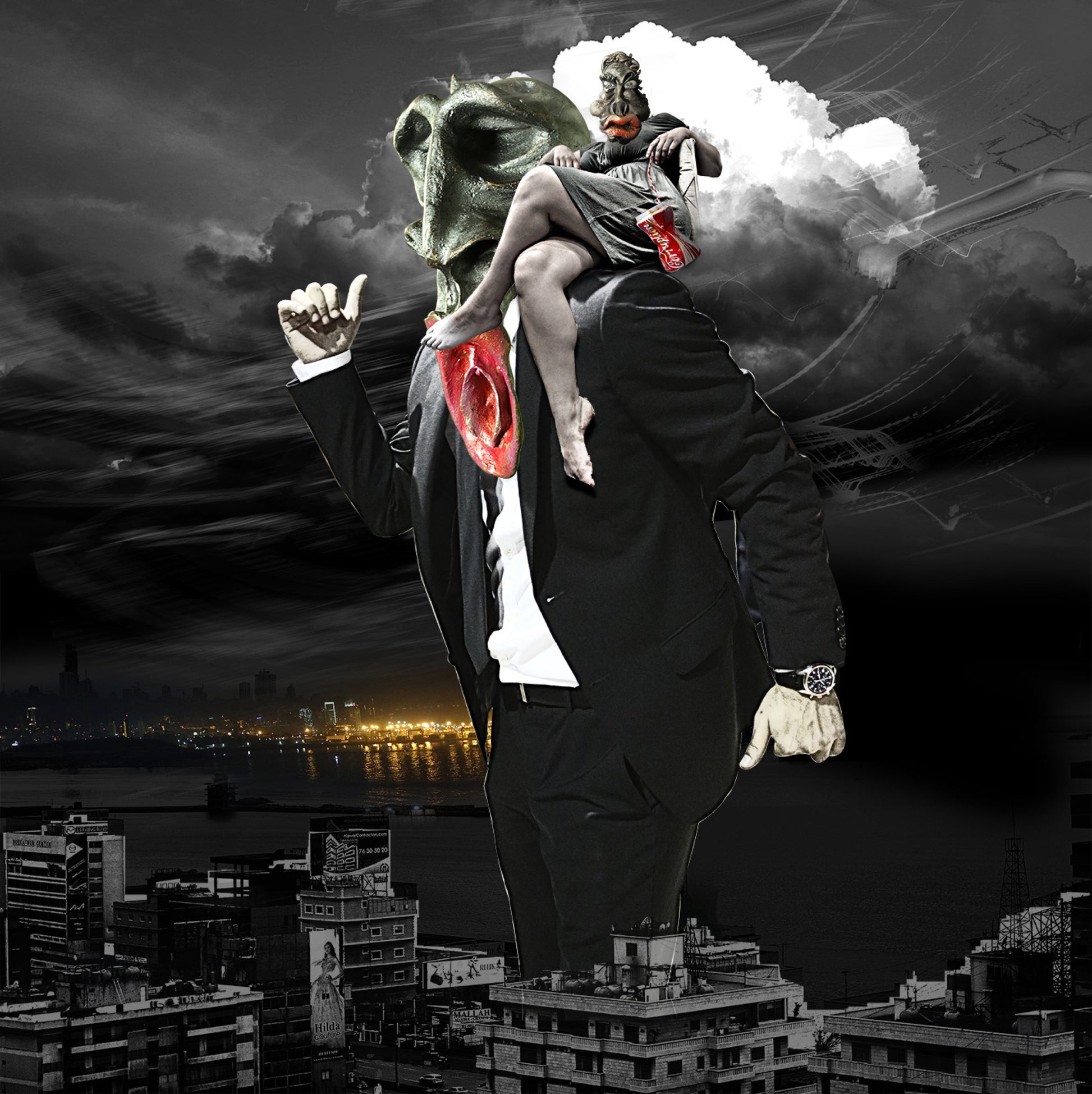 A COLLISION OF SCULPTURE, PHOTOGRAPHY, AND DIGITAL MANIPULATION. THIS WORK IS CONSTRUCTED FROM ORIGINAL IMAGES OF BRONZE SCULPTURES FROM THE FAMILLIA SERIES, LAYERED WITH PHOTOGRAPHIC ELEMENTS AND REASSEMBLED THROUGH DIGITAL COLLAGE.