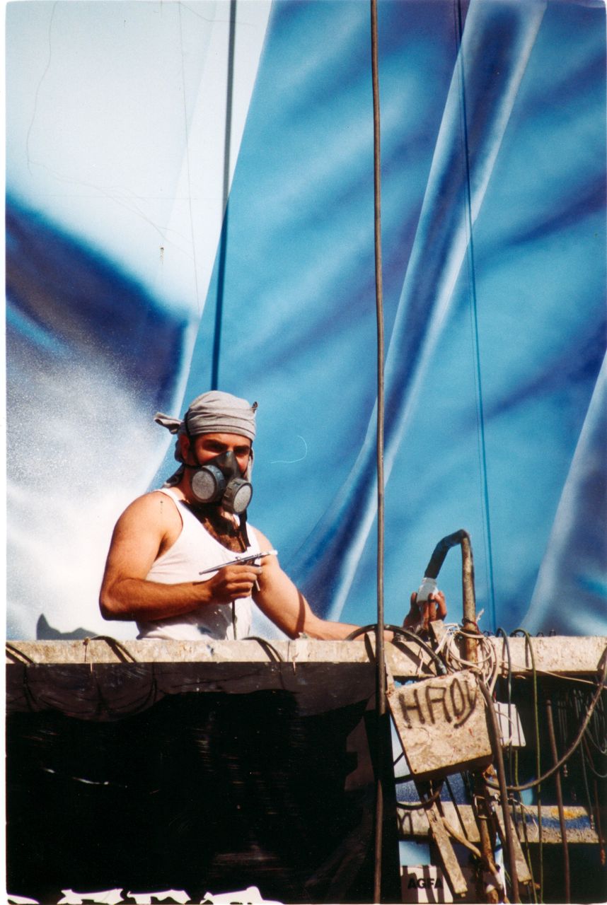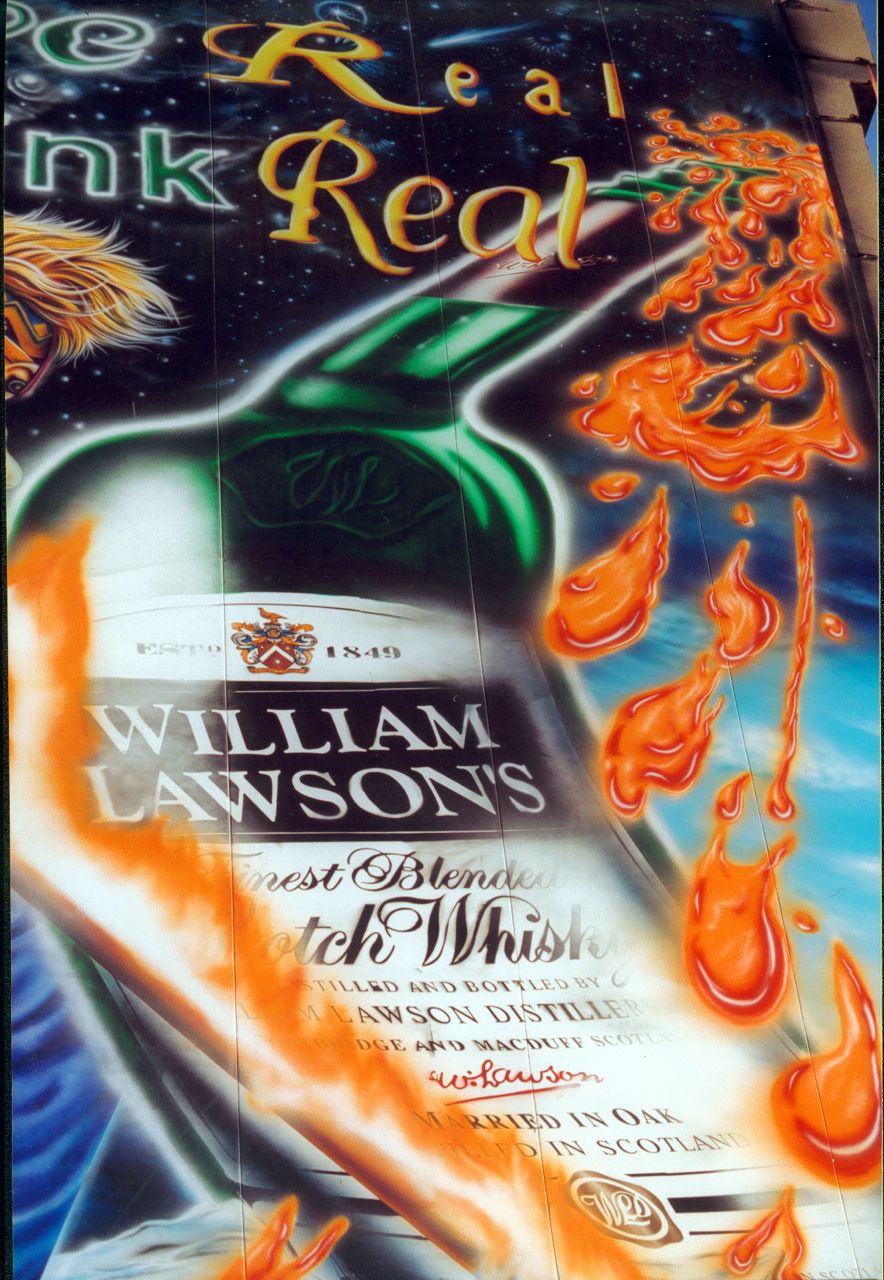 This monumental graffiti artwork spans an impressive 10 x 15 meters, covering five floors on the building's exterior. Completed in 2000 after 20 days of meticulous work, the WILLIAM LAWSONS piece captivated highway commuters throughout its creation. Executed with durable urethane paints, this large-scale urban installation has maintained its integrity and visual impact for over two decades, demonstrating both technical expertise and artistic endurance in the public space. Pricing at $600 per square meter all included.